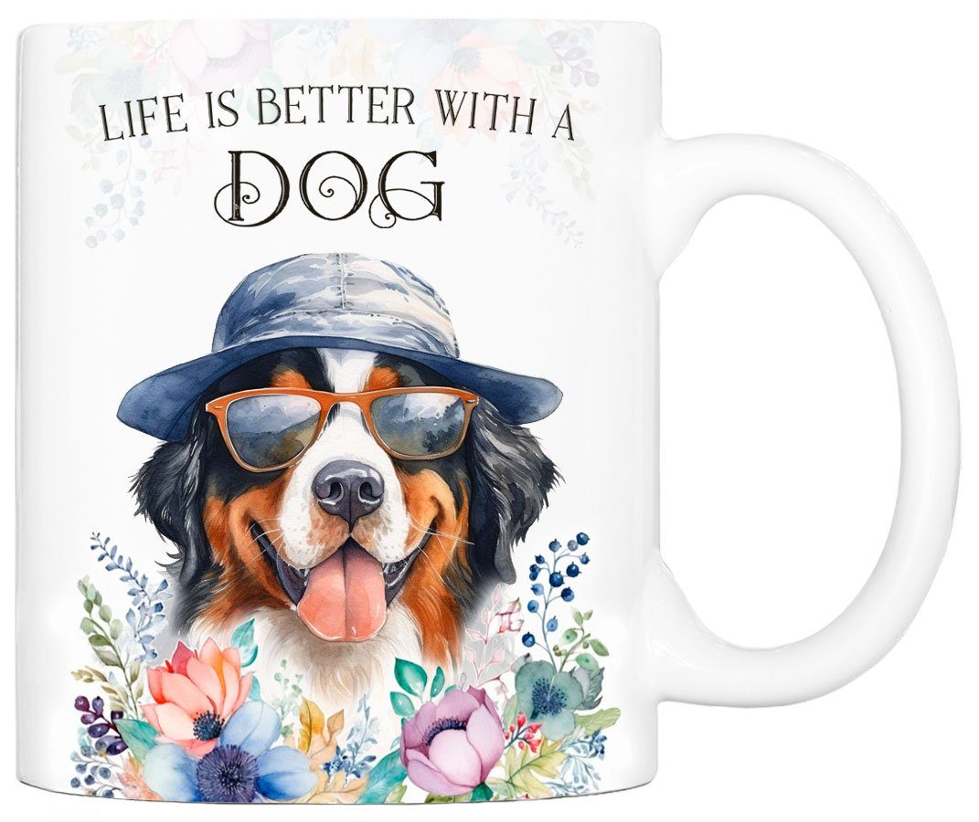 Die fröhlich bunte Tasse mit Hunderasse im Watercolor-Stil und "Life is better with a Dog" Schriftzug macht den Kaffee am Morgen und den Tee am Abend zu etwas ganz Besonderem!