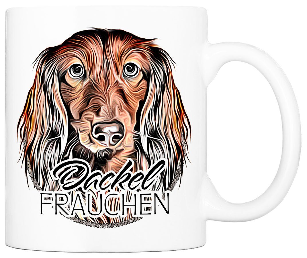Cadouri Tasse DACKEL FRAUCHEN - Kaffeetasse für Hundefreunde, Keramik, mit Hunderasse, beidseitig bedruckt, handgefertigt, Geschenk, 330 ml
