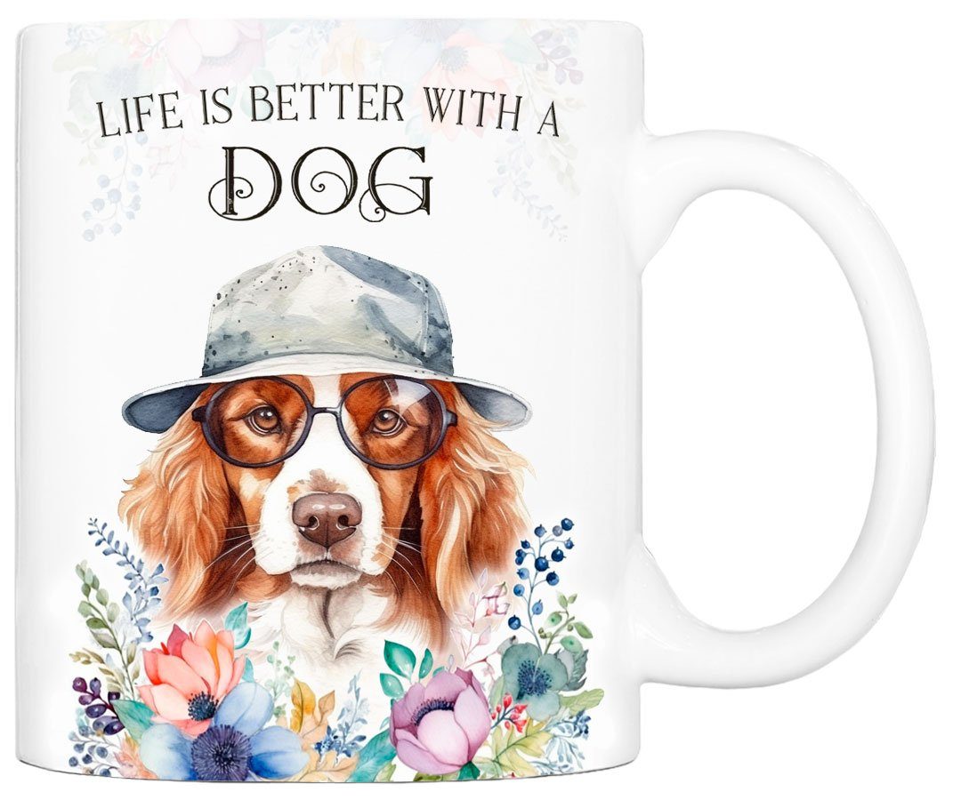 Die fröhlich bunte Tasse mit Hunderasse im Watercolor-Stil und "Life is better with a Dog" Schriftzug macht den Kaffee am Morgen und den Tee am Abend zu etwas ganz Besonderem!