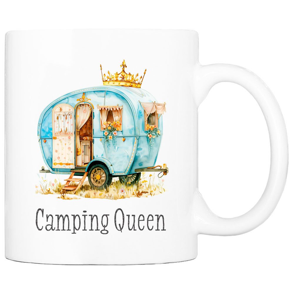 Unsere fröhlich bunte Kaffeetasse mit Campingmotiv ist die perfekte Tasse für Camper!