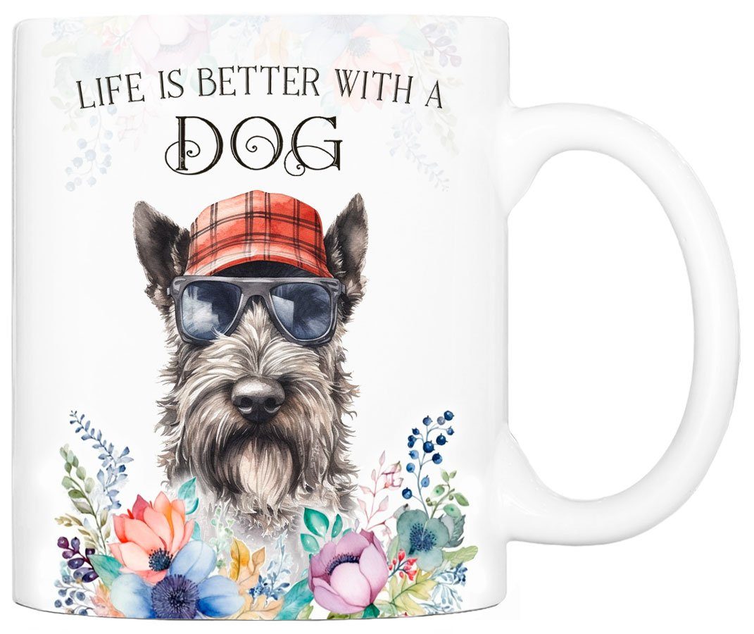 Die fröhlich bunte Tasse mit Hunderasse im Watercolor-Stil und "Life is better with a Dog" Schriftzug macht den Kaffee am Morgen und den Tee am Abend zu etwas ganz Besonderem!