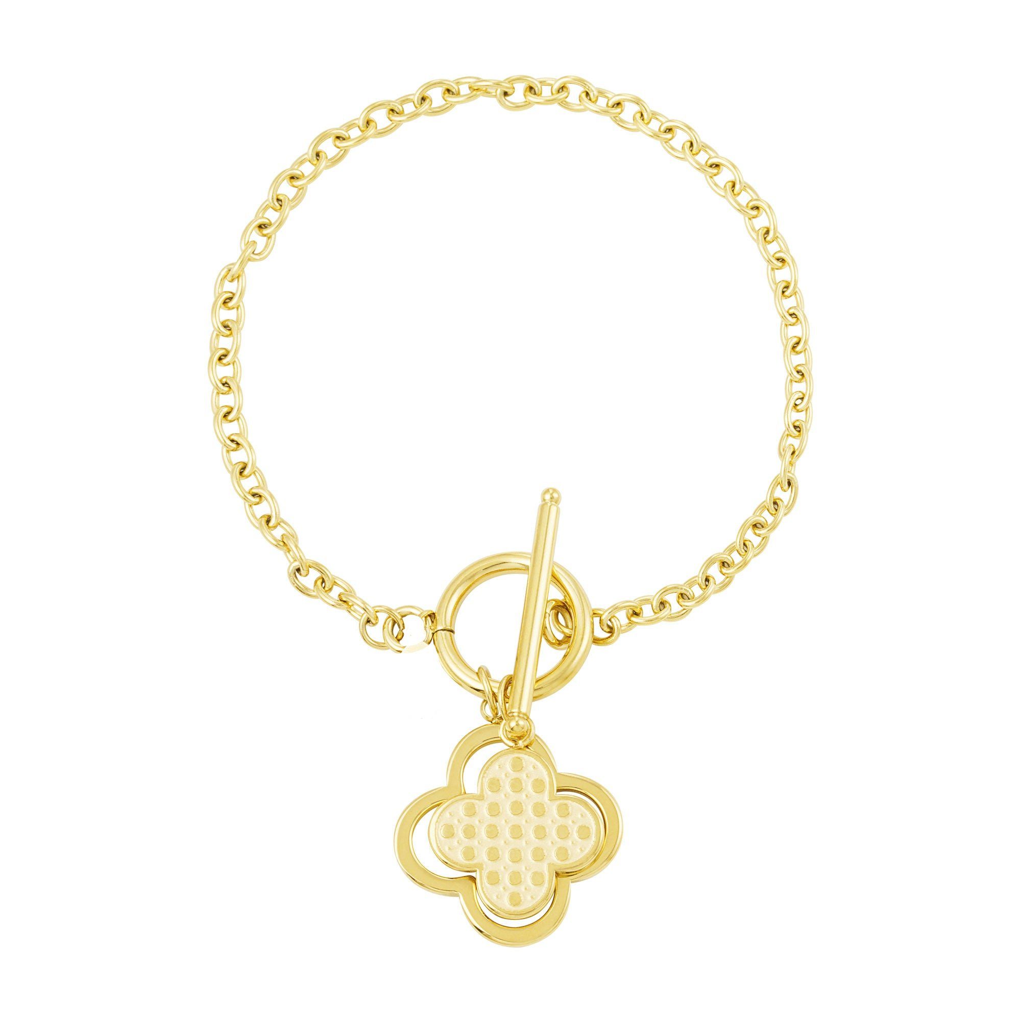 Die grobe Armkette aus wasserfestem Edelstahl verfügt über einen Knebelverschluss mit einem massiven Kleeblatt Anhänger.