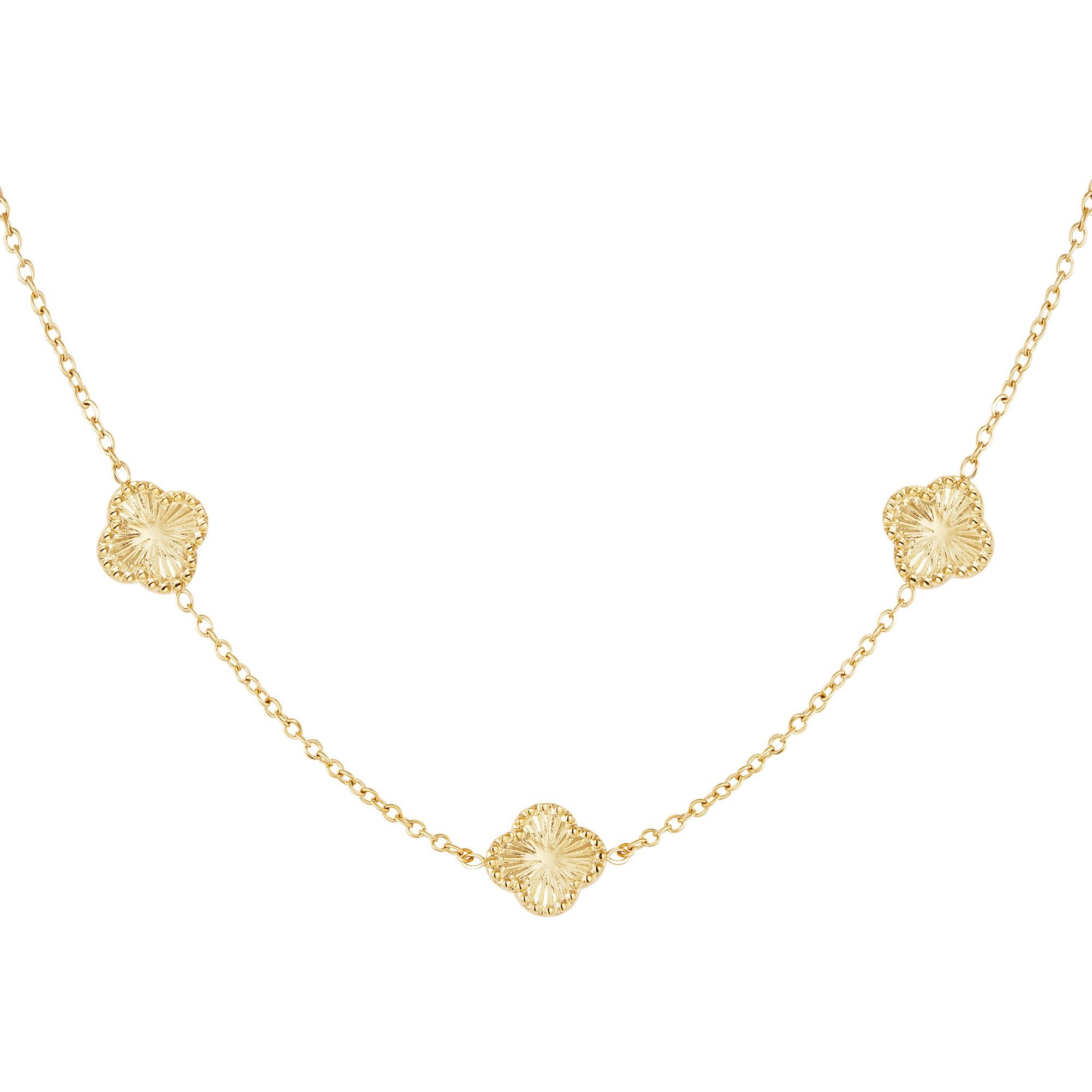 Die zarte Kette aus wasserfestem Edelstahl ist fünf Kleeblatt Anhängern verziert und in Gold oder Silber erhältlich.