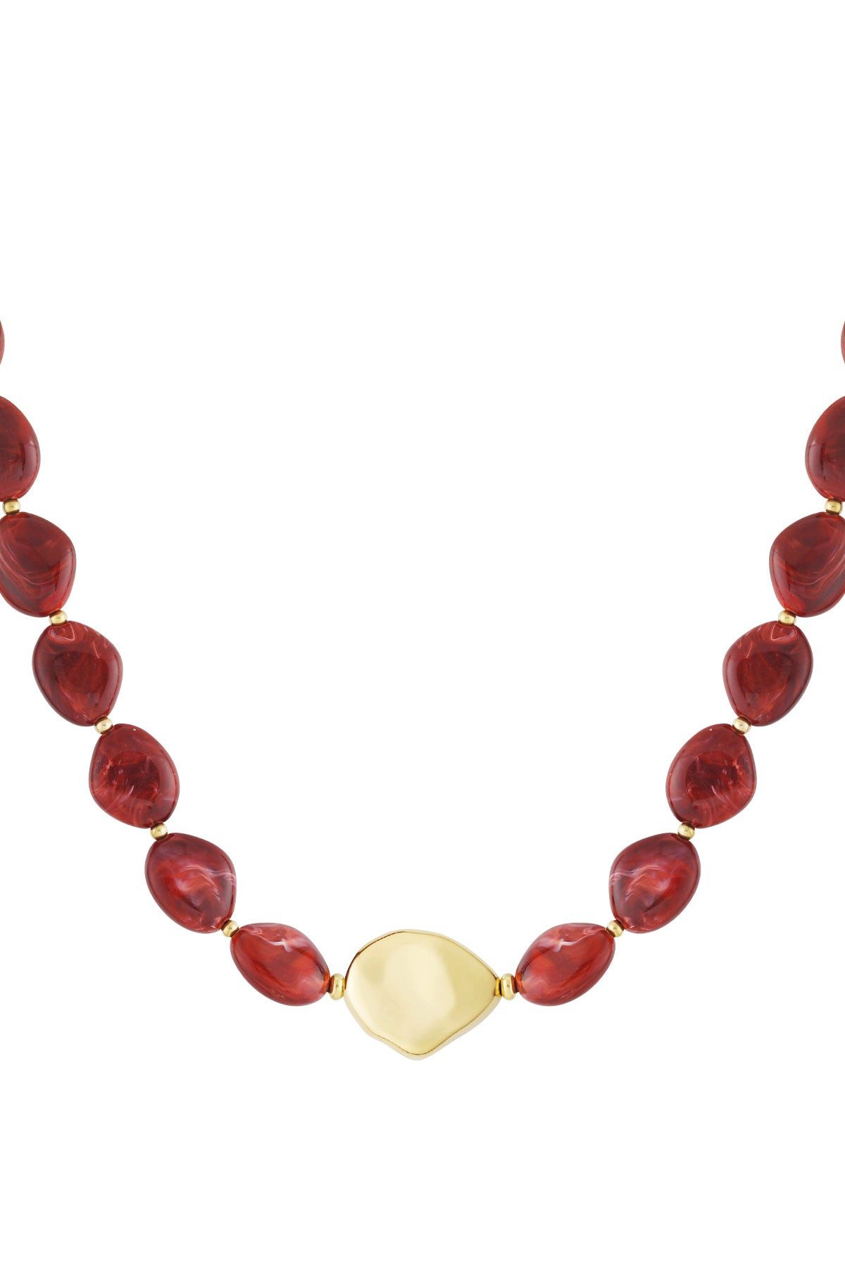 Die Jovie Kette bringt pure Ausdruckskraft und Retro-Vibes in deinen Look. Große, marmorierte Perlen in Braun, Rot oder Oliv wechseln sich mit kleinen goldenen Akzenten ab und werden von einem markanten, organisch geformten Mittelstück in Gold gekrönt. Jovie ist ein Eyecatcher für alle, die Individualität lieben – ideal zu Satinblusen, Rollis oder als Kontrast zu schlichten Outfits.