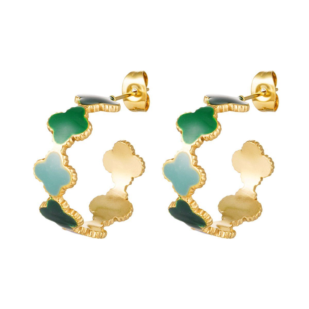 Die bunten Blättercreolen sind mit farbiger Emaille überzogen und somit ein ganz besonderer Blickfang.