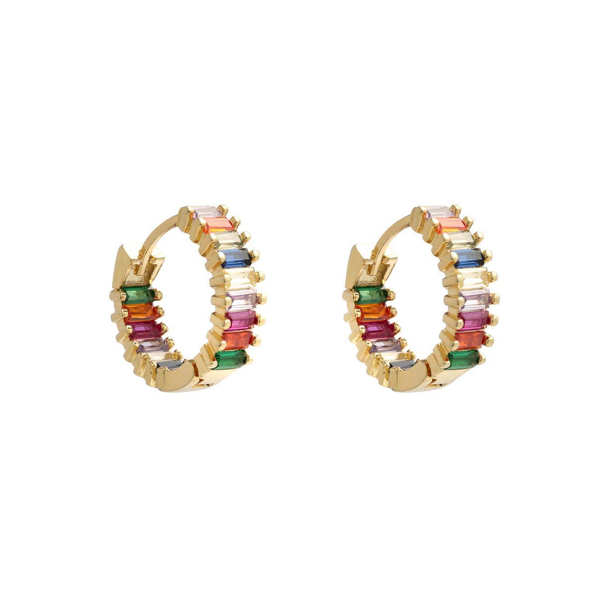 Die kleinen goldenen Creolen leuchten wie der Regenbogen mit funkelnden farbigen Zirkonia. PRIMAVERA ist auch perfekt zum kombinieren.