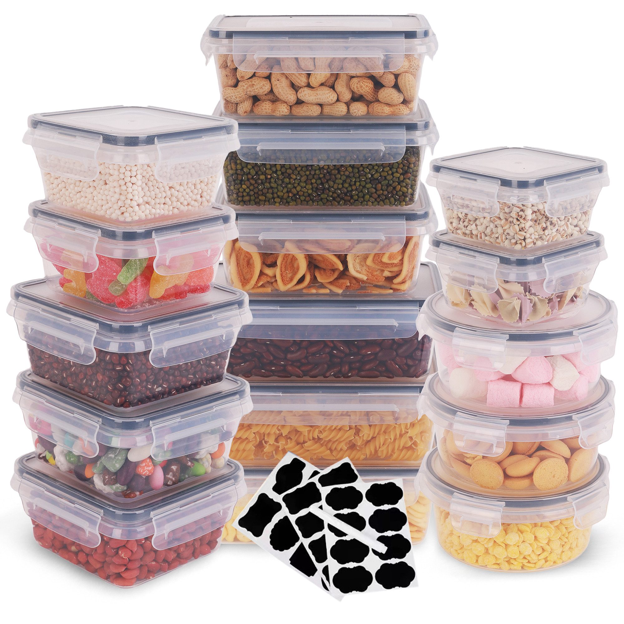 Die CALIYO 16-teiligen Frischhaltedosen mit Deckel bieten vielseitige Möglichkeiten zur Aufbewahrung von Lebensmitteln und sind ideal für den täglichen Gebrauch.