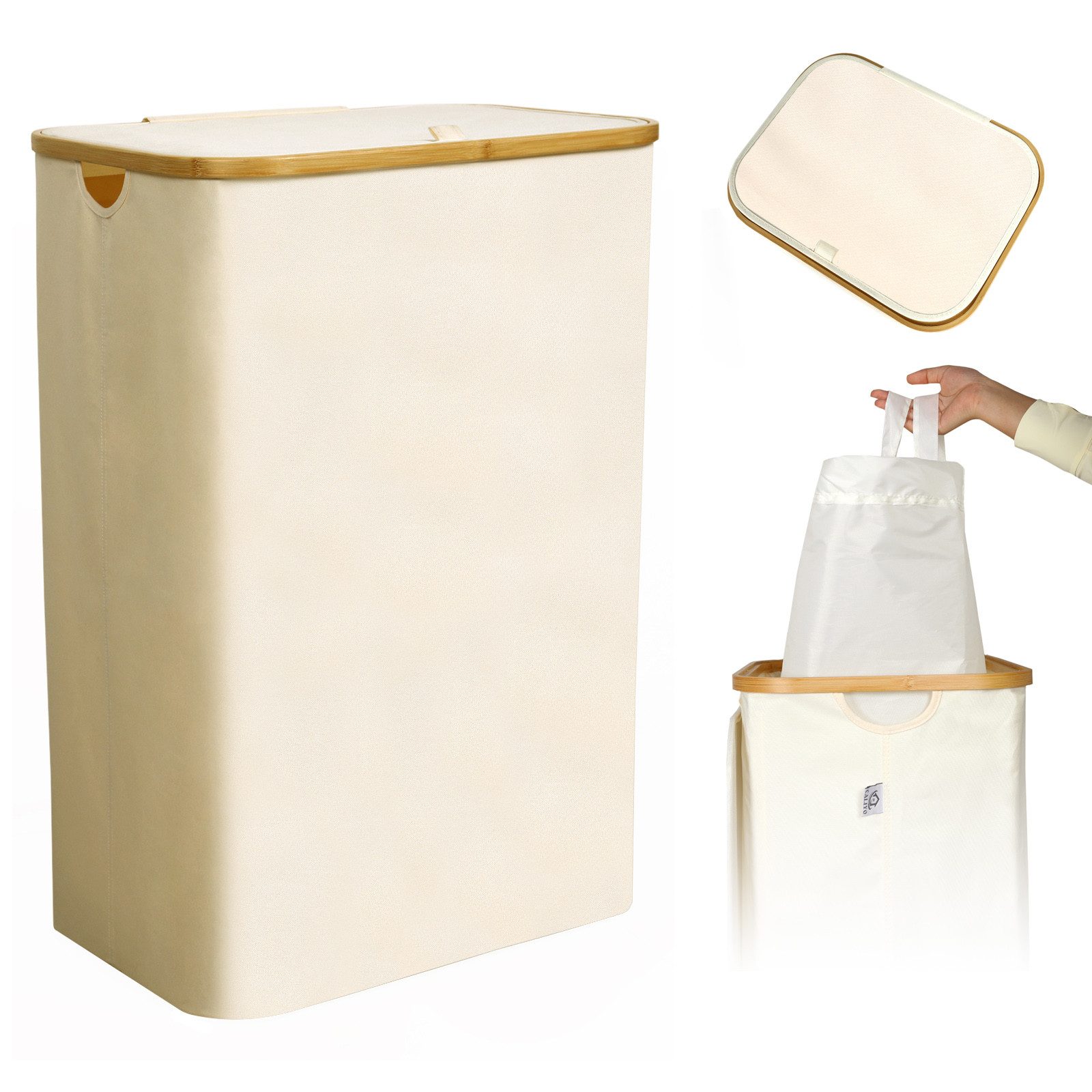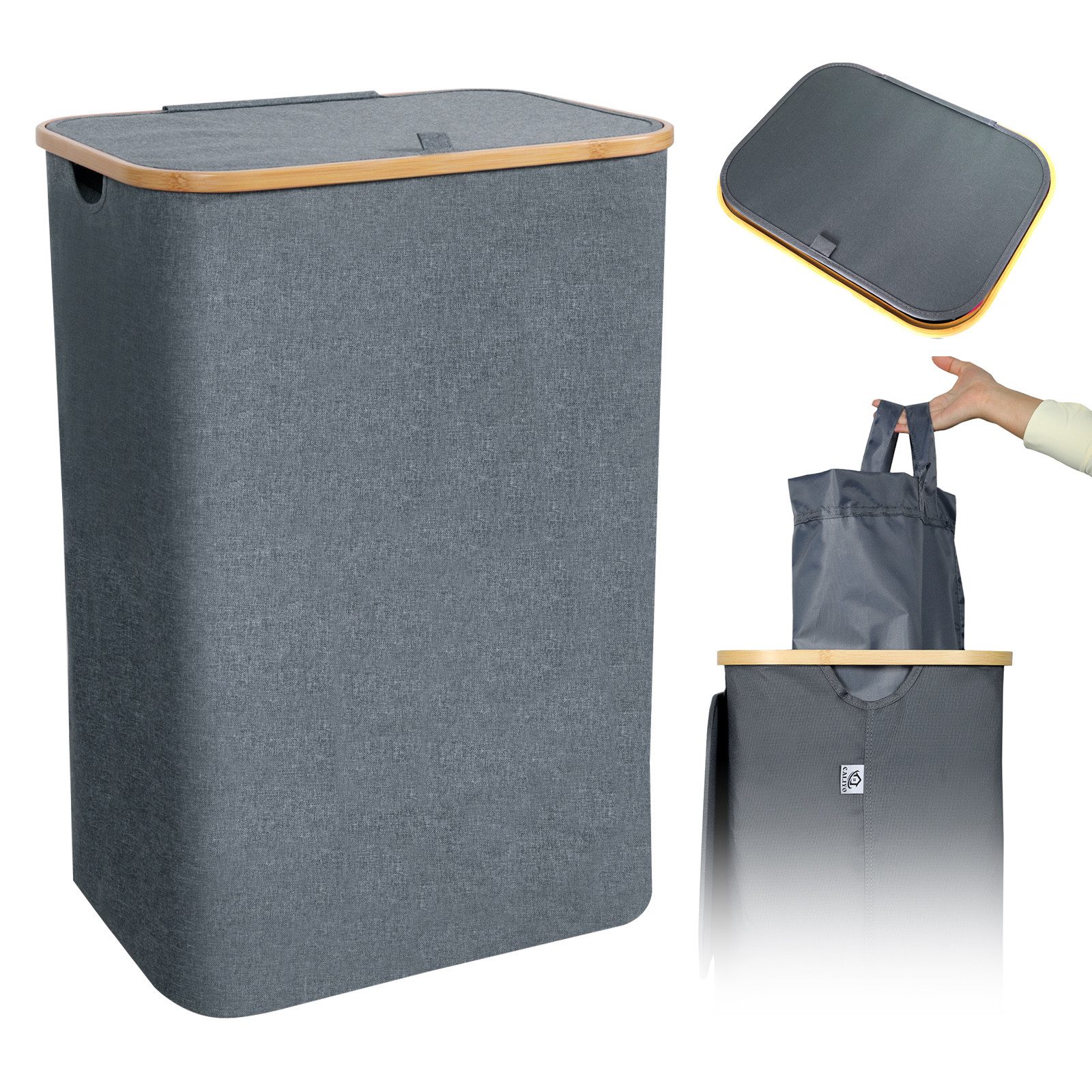 Mit seinem modernen Design und den eleganten Bambus-Applikationen fügt sich der Wäschekorb harmonisch in jede Wohnumgebung ein. Egal, ob im Badezimmer, Schlafzimmer, Kinderzimmer oder Wohnzimmer – dieser stilvolle Blickfang sorgt überall für Ordnung und ist dabei ein echter Hingucker. Ein absolutes Must-have für jedes Zuhause.