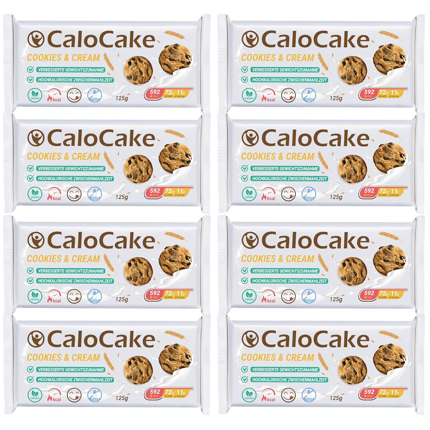CaloCake: Energie im Riegelformat! Bei CaloCake handelt es sich um Aufbaunahrung. CaloCake gilt als Riegel zur schnellen Gewichtszunahme und kann für verschiedene Zwecke eingesetzt werden. Leistungssportler, die besonders viel Energie benötigen und die Reserven nach dem Training auffüllen wollen, verwenden den Kohlenhydrate Riegel. Aber auch Untergewichtige, die zunehmen müssen, profitieren von der hochkalorischen Nahrung. Außerdem ist der Weight Gainer CaloCake eine ideale Aufbaunahrung für Senioren. Daher ist der hochkalorische Riegel gerade für ältere Menschen über 40 Jahren besonders gut geeignet. Angereichert mit Ballaststoffen, gesunden Fetten, Eiweiß und komplexen Kohlenhydraten versorgt CaloCake den Körper mit vielem, was er braucht. Suchst du nach einer hochkalorischen Aufbaunahrung zum Zunehmen, dann ist der Zunehmriegel CaloCake das Richtige für dich! CaloCake: Kraftpaket zum Mitnehmen! Dein Energielieferant in jeder Situation! Sportlern, die durch intensives Training einen hohen Kalorienverbrauch haben und viel Energie benötigen, hilft der hochkalorische Zunehmsriegel dabei, die Energie zurückzugewinnen. So können Heißhungerattacken und die Aufnahme von ungesunder Nahrung verhindert werden. CaloCake ist auch eine großartige Option für Menschen, die einen beschäftigen Lebensstil haben und einen schnellen und einfachen Mahlzeitenersatz benötigen. Jeden Tag genussvoll Energie tanken CaloCake ist eine praktische und leckere Möglichkeit, die zusätzlichen Kalorien und Nährstoffe zu sich zu nehmen, die zur Unterstützung der Gewichtszunahme erforderlich sind. Der Geschmack ist köstlich und sättigend, was ihn zu einer großartigen Wahl für alle macht, die einen kalorienreichen Snack suchen, der sowohl nahrhaft als auch lecker ist. Mit einer 24-teiligen Packung ist CaloCake ein hervorragendes Preis-Leistungs-Verhältnis und eine kluge Investition in Ihre Gesundheits- und Fitnessziele. Bestandteile HAFERflocken (47%), Invertzuckersirup, Margarine (pflanzliches Fett [Palm], Trinkwasser, pflanzliches Öl [Sonnenblume], Emulgatoren [Mono- und Diglyceride von Speisefettsäuren, Lecithine], Speisesalz [0,1%], Aroma, Säuerungsmittel: Citronensäure, Farbstoff: Carotin), weißer Überzug (6%) (Zucker, vollständig gehärtetes Palmfett, SOJAmehl, Emulgator: SOJAlecithine, Aromen), extra dunkler Keks (2%) (WEIZENmehl, Zucker, pflanzliches Fett [Palmöl], Kakaopulver, Glukosesirup, Emulgator [SOJAlecithine], Backtriebmittel [E503i, E500ii], Speisesalz, Aromen), Schokoladenflocken (1%) (Zucker, vollständig gehärtetes Palmfett, Kakaopulver mit reduziertem Fettgehalt, SOJAmehl, Sonnenblumenöl, Emulgatoren [SOJAlecithin, E476], Aromen), Feuchthaltemittel: Glycerin, Konservierungsstoff: Kaliumsorbat, Salz, Aromen.Kann Spuren von HASELNÜSSEN, MILCH, SCHWEFELDIOXID und MANDELN enthalten. Haftungsausschluss Die Produktverpackung und zugehörigen Dokumente enthalten möglicherweise Angaben, die über die auf unserer Internetseite gemachten Angaben hinausgehen und/oder sich von ihnen unterscheiden. Wir empfehlen Ihnen daher, sich nicht allein auf die Angaben zu verlassen, die auf unserer Internetseite angezeigt werden, sondern sich vor Gebrauch der Ware stets auch sorgfältig die Etiketten, Warnhinweise und Anleitungen durchzulesen, die mit der Ware geliefert werden.