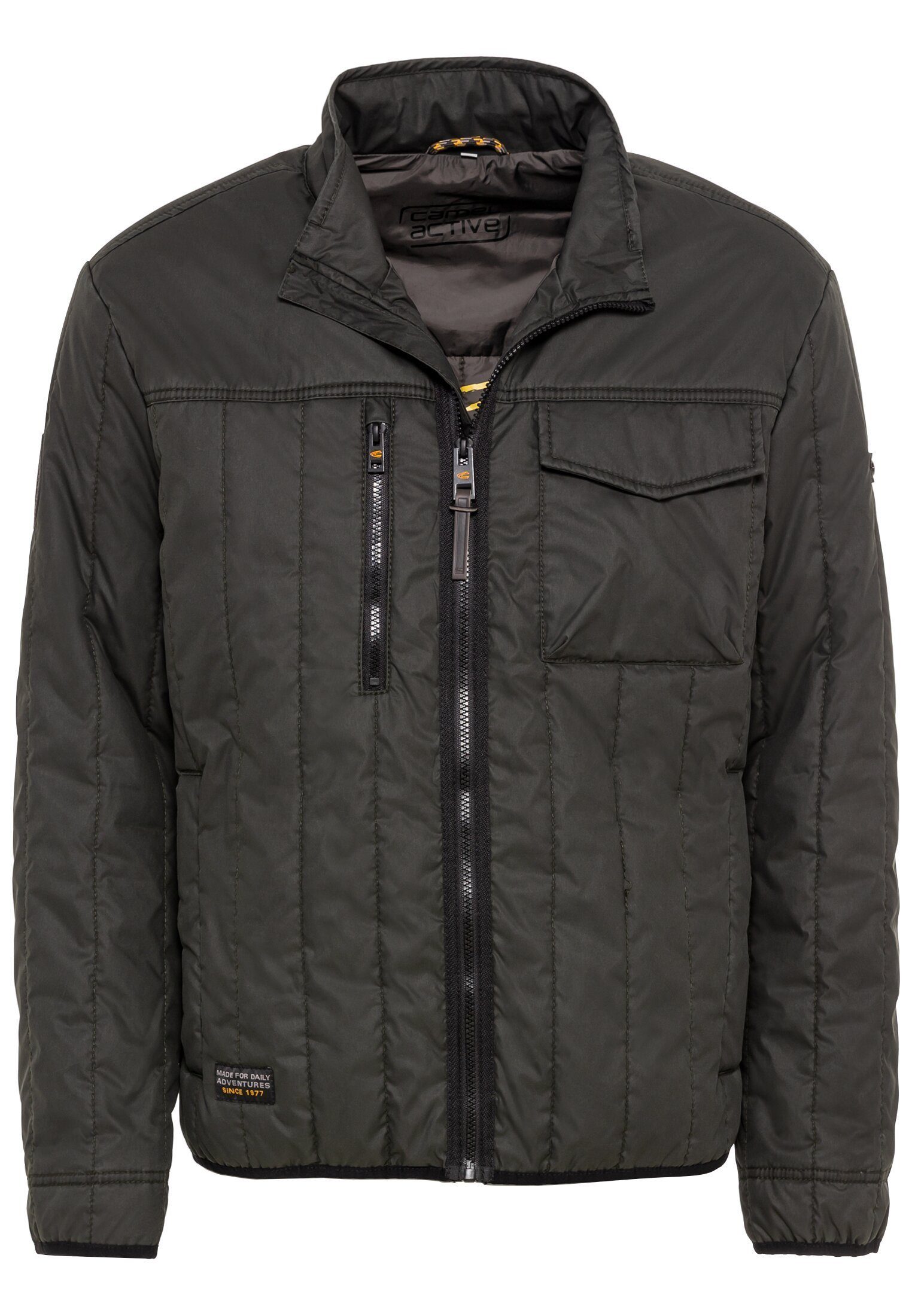 Du suchst eine schöne, praktische und bequeme Herrenjacke für den Sommer? Unser vollgefütterter camel active Blouson mit leichter Wattierung bietet in jeder Hinsicht überzeugende Markenqualität. Zwei seitliche Taschen, eine aufgesetzte Brusttasche und eine Reißverschlusstasche bieten ausreichend Stauraum für Schlüssel, Handy, Geld und sonstige Dinge, die Du mitführen möchtest. 100 Prozent Polyester als Material sorgen zugleich dafür, dass die camel active Jacke weich, anschmiegsam und doch robust ist. Sie kann auch mit größeren Belastungen problemlos umgehen. Für einen optisch ungestörten Look haben die Designer die Markenprints von camel active zurückhaltend gestaltet. Diese befinden sich an der Innenseite der Herrenjacke und am linken Ärmel. Außen ist die camel active Jacke ansonsten abgesehen von den schwarzen Reißverschlüssen einfarbig gehalten.