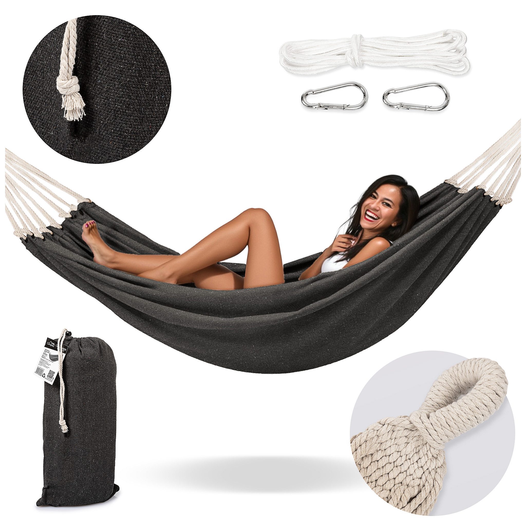 Die solide Verarbeitung, die große Liegefläche von 200 × 150 cm und die maximale Belastbarkeit von bis zu 240 kg garantieren einen sicheren und komfortablen Aufenthalt für zwei Personen. Im Set enthalten ist eine praktische Tragetasche, die den Transport und die Aufbewahrung erleichtert.