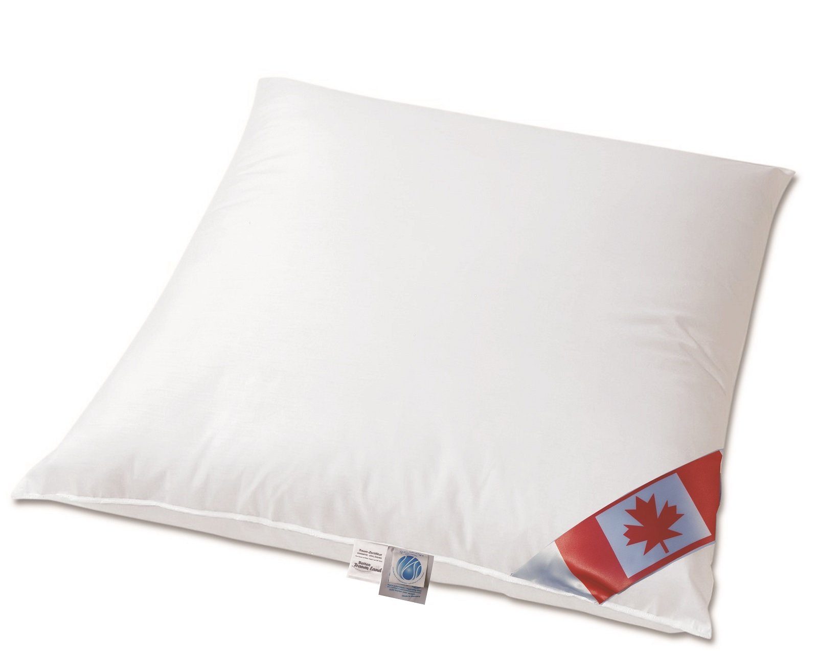 Premium Air-O-Cell Plus 3-Kammer Daunenkissen 80x80 cm mit 1.000 g Füllgewicht, festes Kissen exklusives Daunenkissen PLUS 200 Gramm mehr Inhalt, als das klassische Air-O-Cell Canada Kissen! Premium Air Cell 3-Kammer Daunenkissen 100% Daune in der Außenkammer und Air Cell Stäbchen im Inneren. Natur trifft auf High Tec profitieren Sie davon und erleben Sie die Sanftheit der Daune und die Stützkraft der Air Cell Luftzellenstäbchen. Die Kombination aus reinen Daunen im äußeren Bereich und Luftzellenstäbchen im Kern des Kissens sorgt für eine optimale Weichheit und Stützkraft. Kuschelig weich und nachhaltige Stützkraft für wohliges Einschlafen und entspanntes Aufwachen für einen erholsamen Schlaf. Passt sich jeder Liegeposition an. Die Feuchtigkeitsregulierung und Rückstellkraft ist optimal gewährleistet so bietet dieses Kissen alles für einen gesunden und erholsamen Schlaf. Füllung außen: jeweils 150 Gramm 100% halbweiße canadische Daune, nicht spezifiziert Füllung innen: 700 Gramm neue Federchen und Daune Klasse 1 80%/20% mit Air Cell Stäbchen, Luftzellenstäbchen. Bezug: Hochwertiger Mako Daunenperkal 100% Baumwolle, Hergestellt in Deutschland 100% Qualität aus deutscher Manufaktur, verantwortlicher Umgang mit natürlichen Ressourcen, kein Lebendrupf. Langlebigkeit durch Pflege, bitte beachten Sie die Pflegeanleitung am Produkt. Durch tägliches aufschütteln des Kopfkissens erhalten Sie die Langlebigkeit und Stützkraft des Kissens. Da Daunen eine hohe Selbstreinigungskraft besitzen, empfehlen wir, das Daunenkissen frühestens nach ca. 2-3 Jahren zu waschen oder in die Reinigung zu geben. Waschen Sie das Kopfkissen mit einem Feinwaschmittel/Daunenwaschmittel bei max 60°C, verwenden Sie bitte nur Fein-oder Daunenwaschmittel (ohne Weichspüler). Das Kissen darf nicht mit Bleiche behandelt werden. Trocknen Sie das Kopfkissen im Trockner unser TIPP: legen Sie eine Tennisball dazu, so bleiben die Daunen locker und flauschig. In den Größen 40x60 cm | 40x80 cm | 80x80 cm und auch als Reisekissen erhältlich.