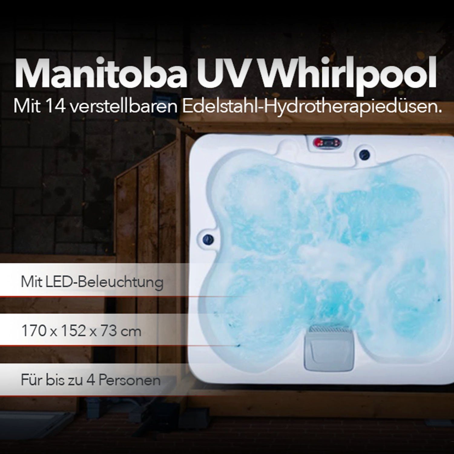Lieferumfang | 1x Manitoba UV Whirlpool, 1x eingesezter Filter, 1x Isolierabdeckung |