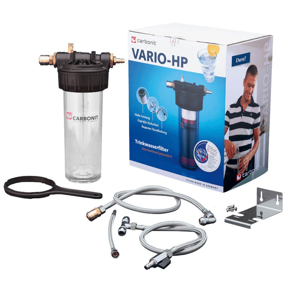 Der Untertisch- Trinkwasserfilter VARIO Basic wird inklusive Schlauchsatz, hochwertigen Steckkupplungen und Wandhalter geliefert.