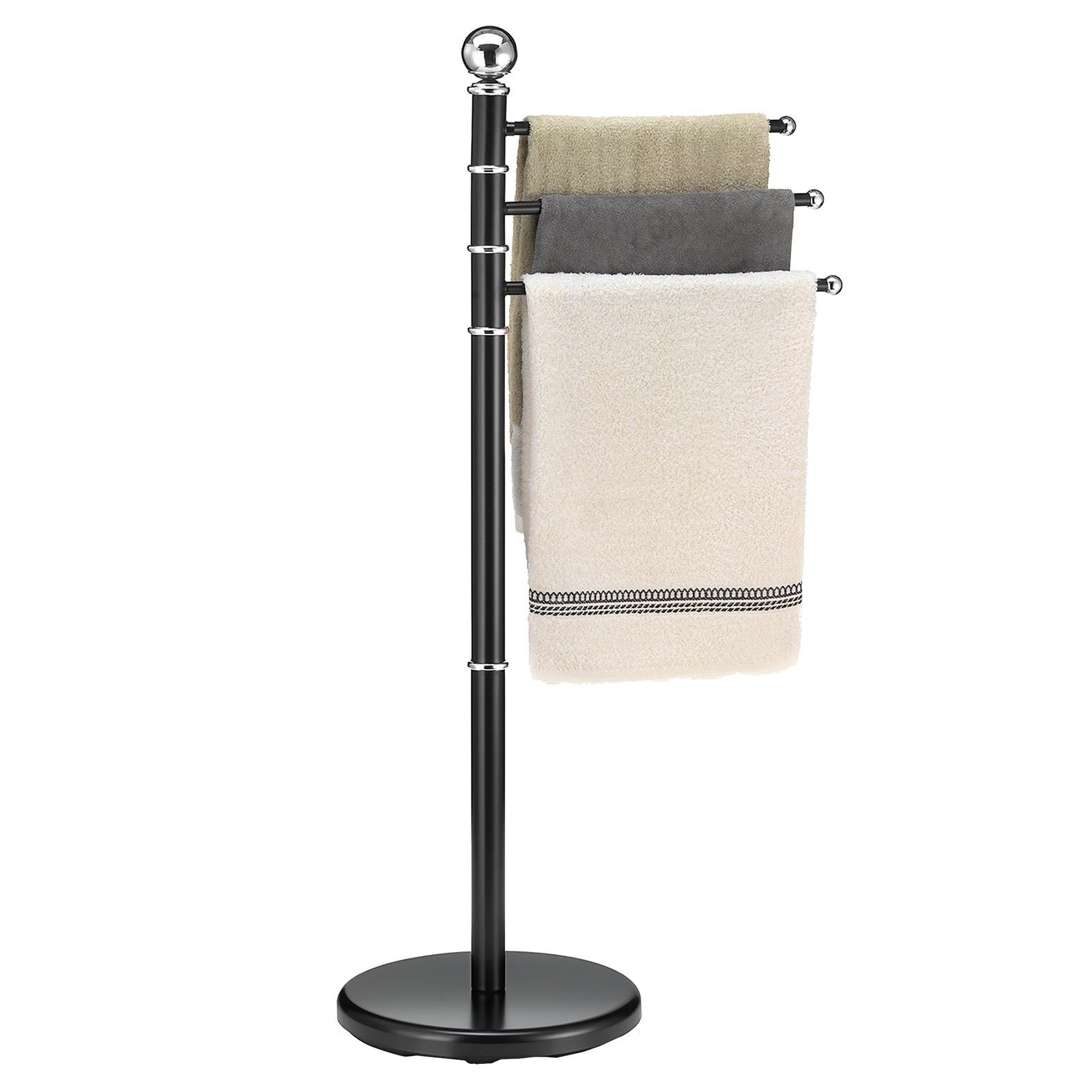 Mit dem zeitlosen und zugleich modernen Design ist unser Handtuchhalter Petra ein Hingucker für jedes Badezimmer. Als freistehender Handtuchhalter mit 3 Handtuchstangen zum platzsparenden Aufhängen und Trocknen von Handtüchern jeglicher Art. Das i-Tüpfelchen setzt die Freibeweglichkeit der Handtuchstangen auf. Sicheren Halt bietet zudem der stabile Standfuß.