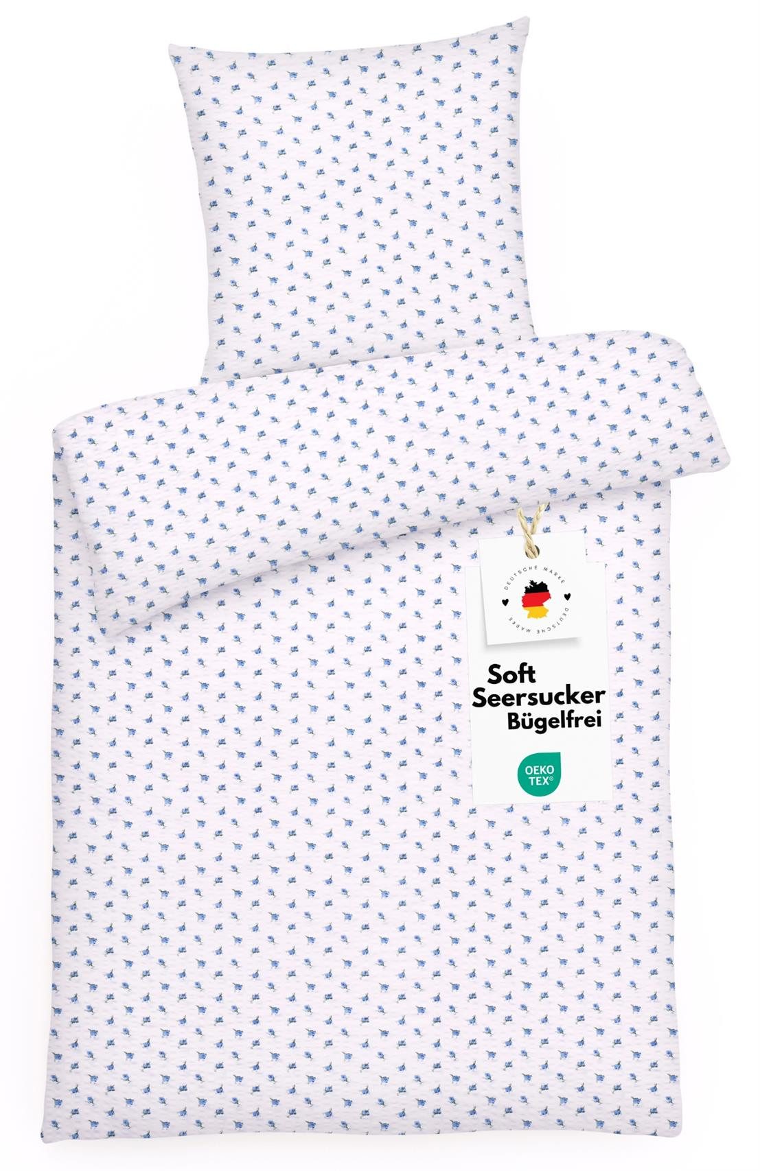 Der Seersucker-Effekt verhindert, dass die Baumwollbettwäsche vollständig auf der Haut liegt. Die Luftschicht, die so zwischen Haut und Bettdecke entsteht, fördert die Luftzirkulation: Die Haut kann atmen und es entsteht ein leichter Klimatisierungseffekt, der übermäßige Schweißbildung verhindern kann und dafür sorgt, dass der Bezug für die Bettdecke nicht unangenehm an der Haut klebt. Darüber hinaus ist die sommerlich leichte Bettwäsche in traumhafter Qualität luftdurchlässig und somit temperaturregulierend, nimmt Feuchtigkeit gut auf und trocknet recht schnell. Für alle die es generell etwas kühler mögen sind Kopfkissenbezug und Deckenbezug aber auch ideal ganzjährig als Ganzjahresbettwäsche geeignet.