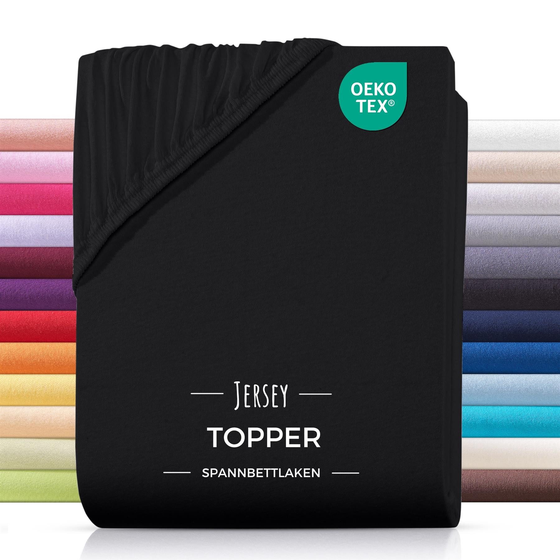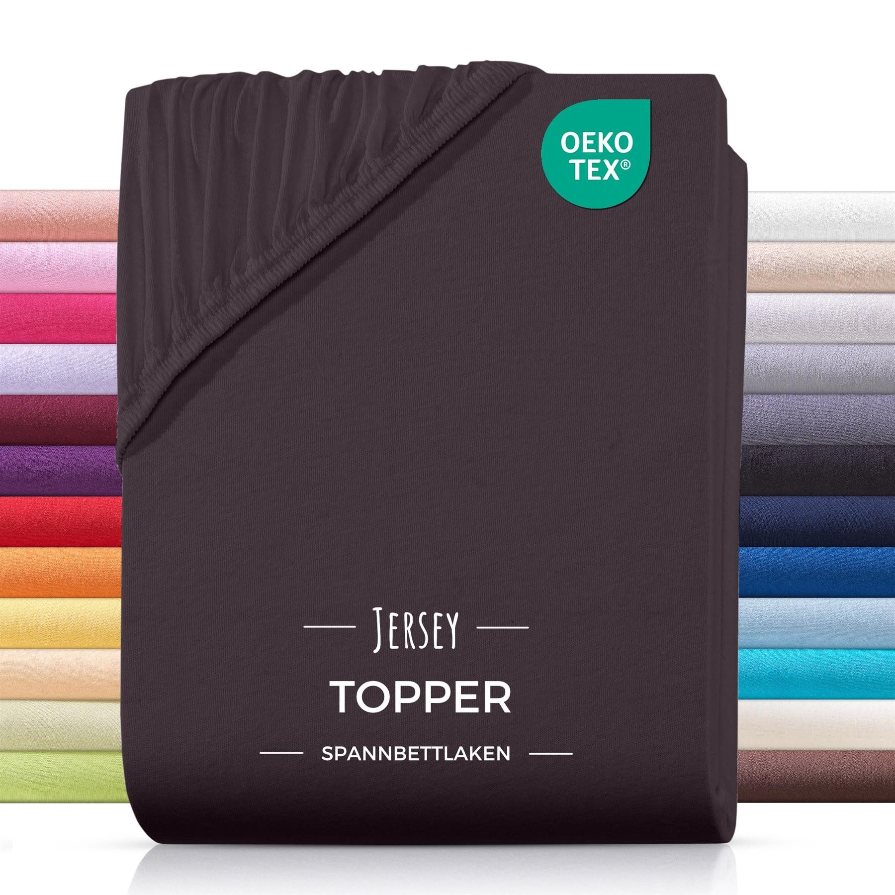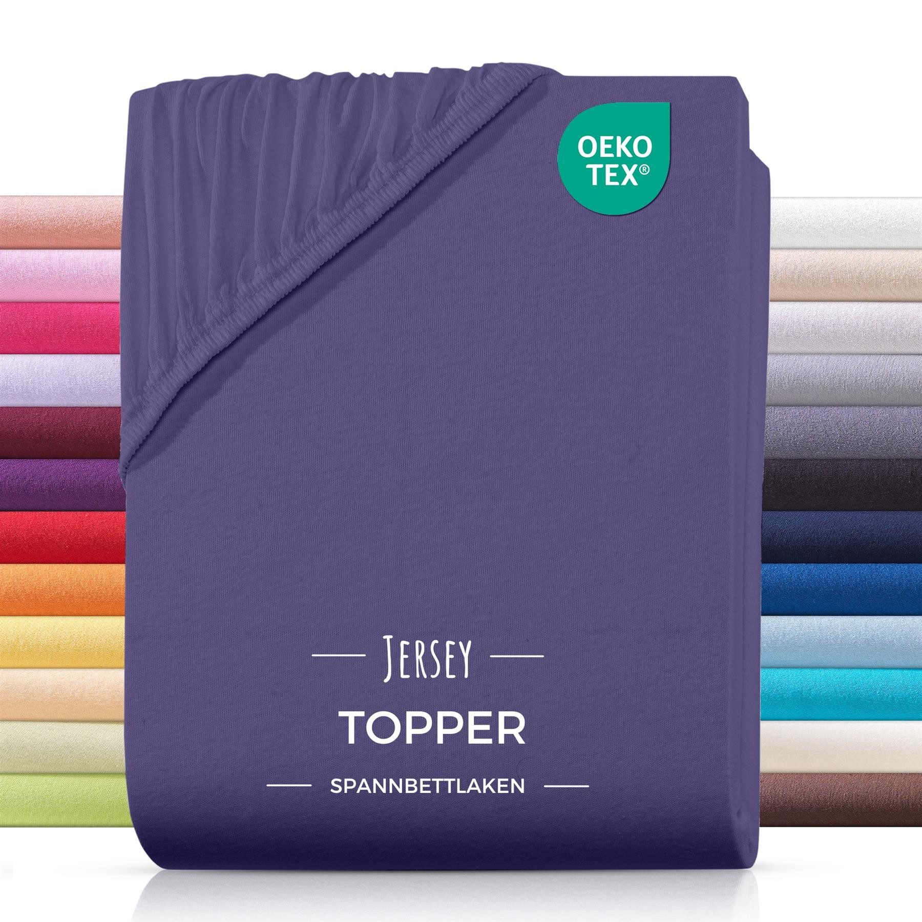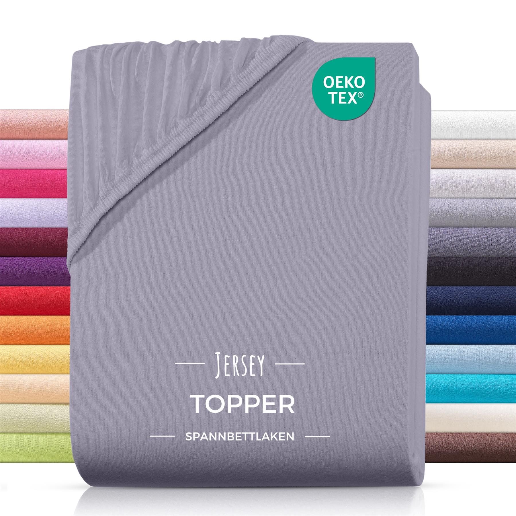 Unsere Jersey Spann-Betttücher für Topper sind besonders strapazierfähig, bügelfrei und aus 100% Baumwolle gefertigt. Der Rundumgummi sorgt für einen faltenfreien Sitz.
