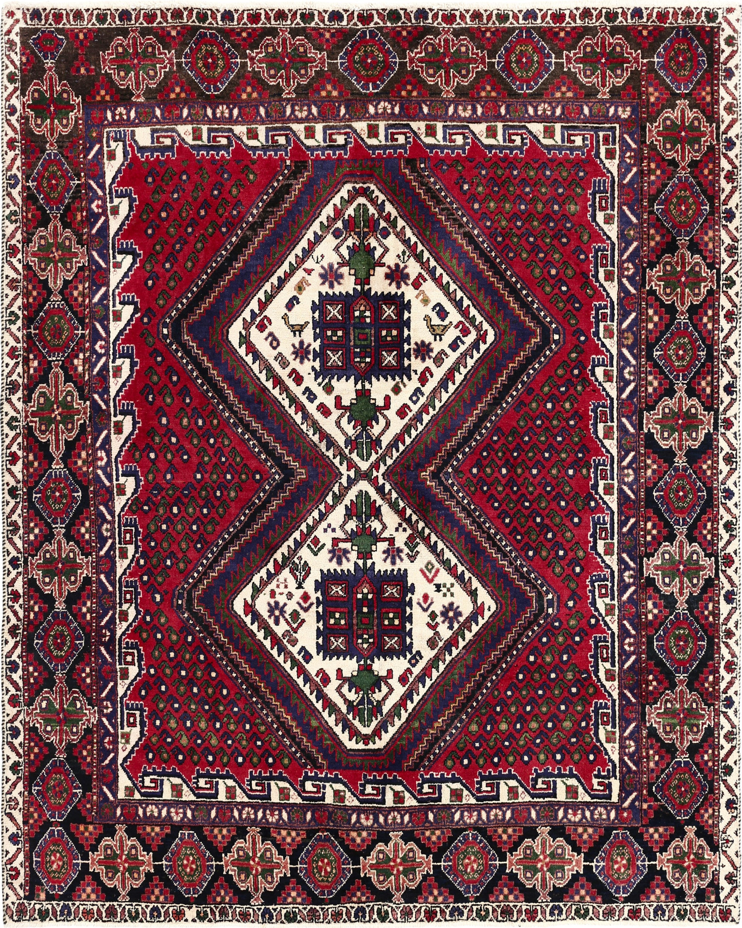 Afshar-Teppiche bestehen aus hochwertiger Wolle und zeichnen sich in der Regel durch eine Farbpalette aus Rost und Blau aus, manchmal auch durch Elemente in helleren Farben. Die Designvarianten sind sehr unterschiedlich und machen Afshar-Teppiche zu den besten Beispielen für Nomadenkunst. Die Kunst der Stämme ist weit verbreitet und heutzutage findet man Teppiche mit stilisierten Vögeln und geometrischen Blumenmustern sowie eckigen Medaillondesigns mit größeren Mittelelementen, die eine gedehnte Tierhaut symbolisieren sollen.