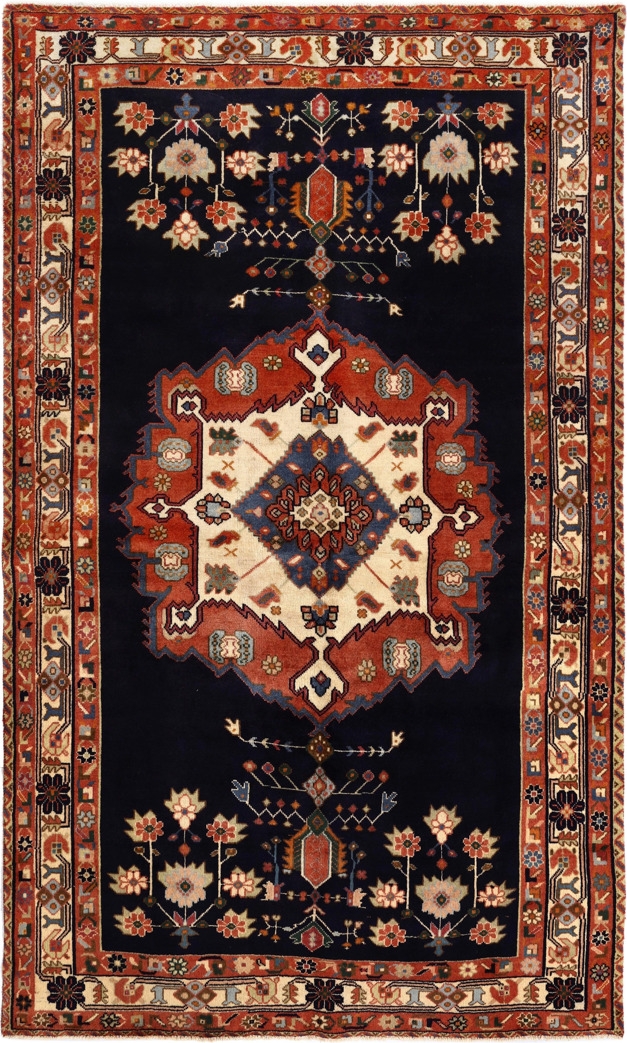 Afshar-Teppiche bestehen aus hochwertiger Wolle und zeichnen sich in der Regel durch eine Farbpalette aus Rost und Blau aus, manchmal auch durch Elemente in helleren Farben. Die Designvarianten sind sehr unterschiedlich und machen Afshar-Teppiche zu den besten Beispielen für Nomadenkunst. Die Kunst der Stämme ist weit verbreitet und heutzutage findet man Teppiche mit stilisierten Vögeln und geometrischen Blumenmustern sowie eckigen Medaillondesigns mit größeren Mittelelementen, die eine gedehnte Tierhaut symbolisieren sollen.