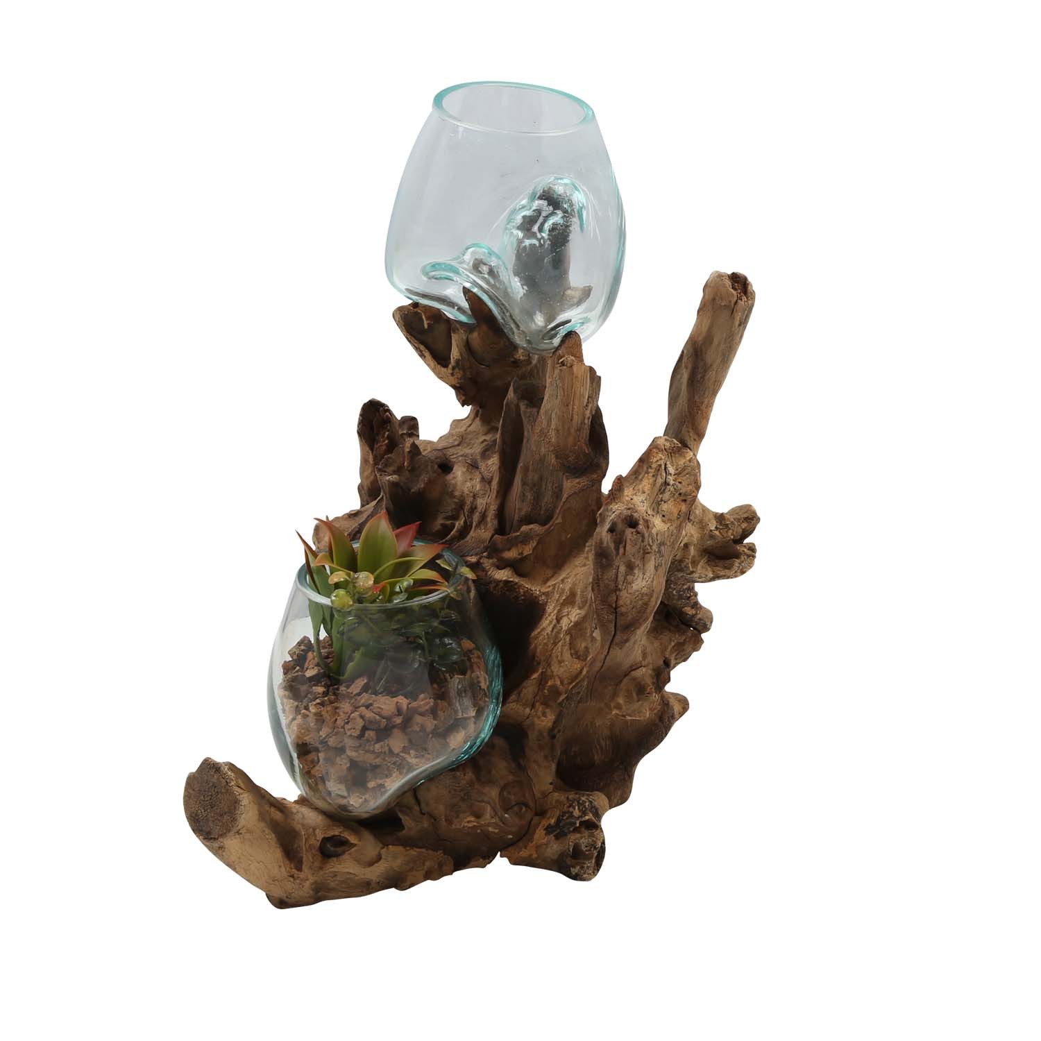 1x Wurzelholz 2x Glas Vase Ø 12cm