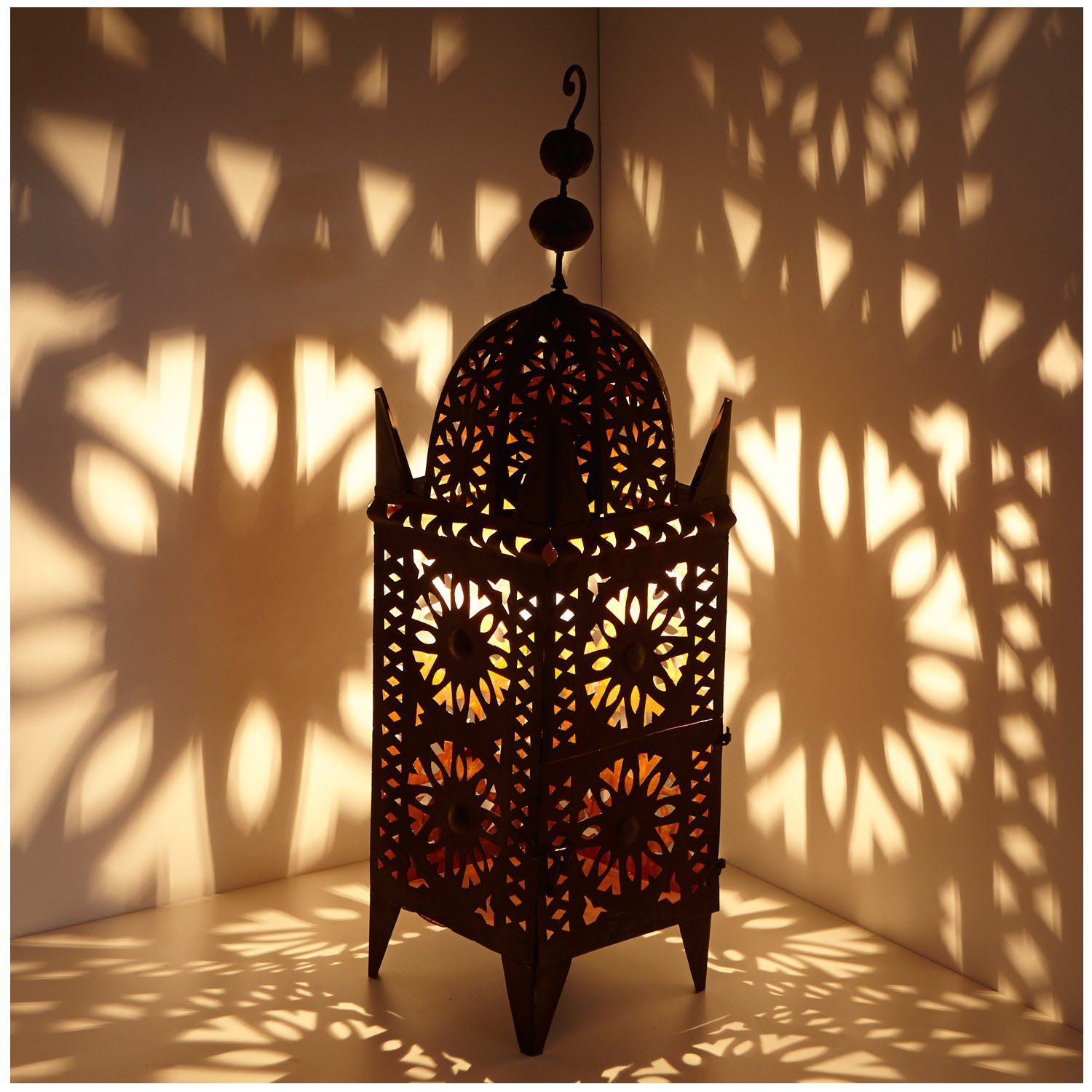 Orientalische Laternen besitzen ein einzigartiges Licht-, Schattenspiel. Durch die schöne Struktur & vielen Ausschnitte bricht das Licht in vielen kleinen Punkten