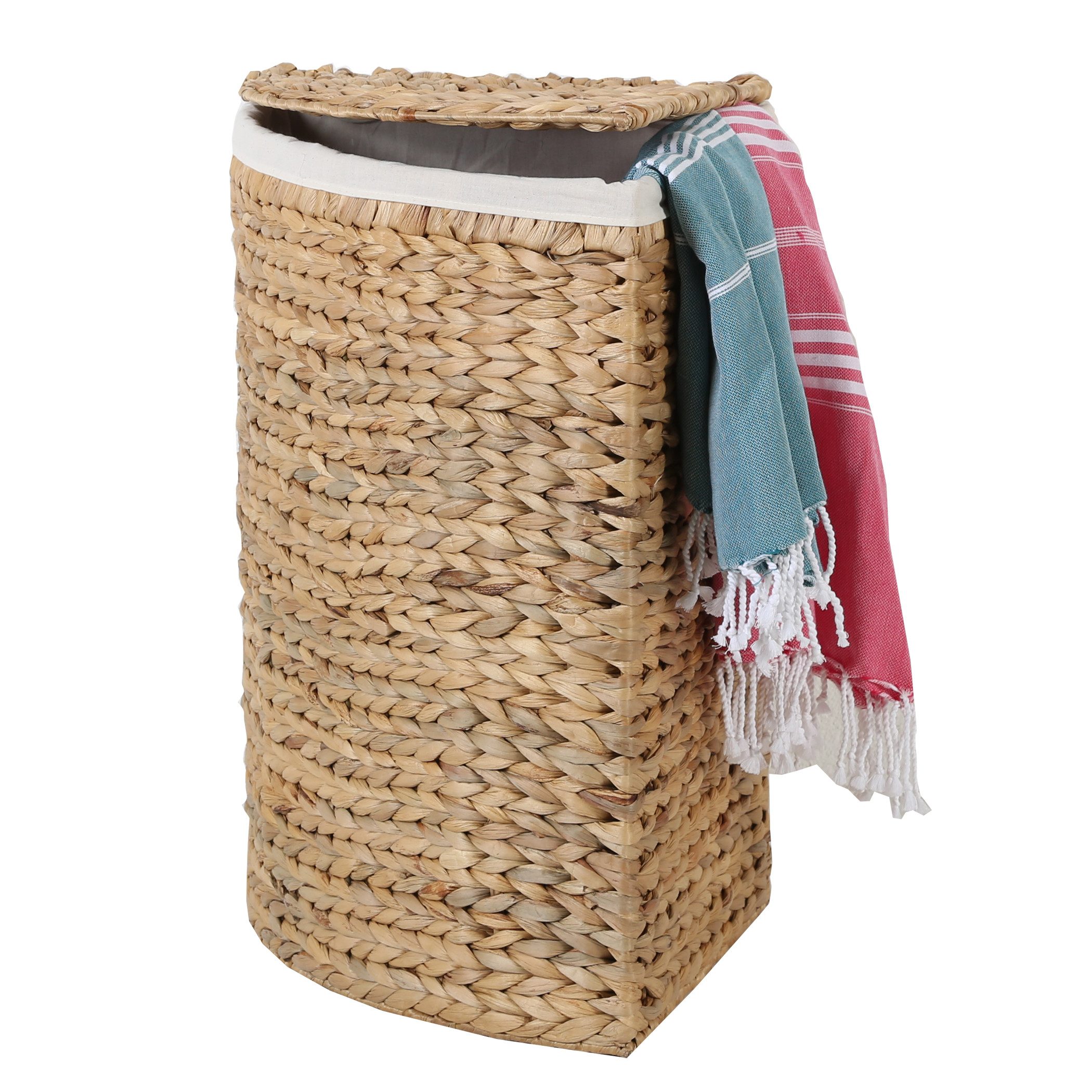 Der handgeflochtene Eckwäschekorb Viona ist ein stilvolles Wohnaccessoire, das natürliche Materialien und praktische Funktionalität vereint. Aus Seegras (Wasserhyazinthe) gefertigt, bringt dieser Wäschesammler einen Hauch von Natur in Dein Zuhause und passt sich harmonisch in verschiedene Wohnstile ein, wie den Boho Chic-, Skandi- und Landhaus-Stil.