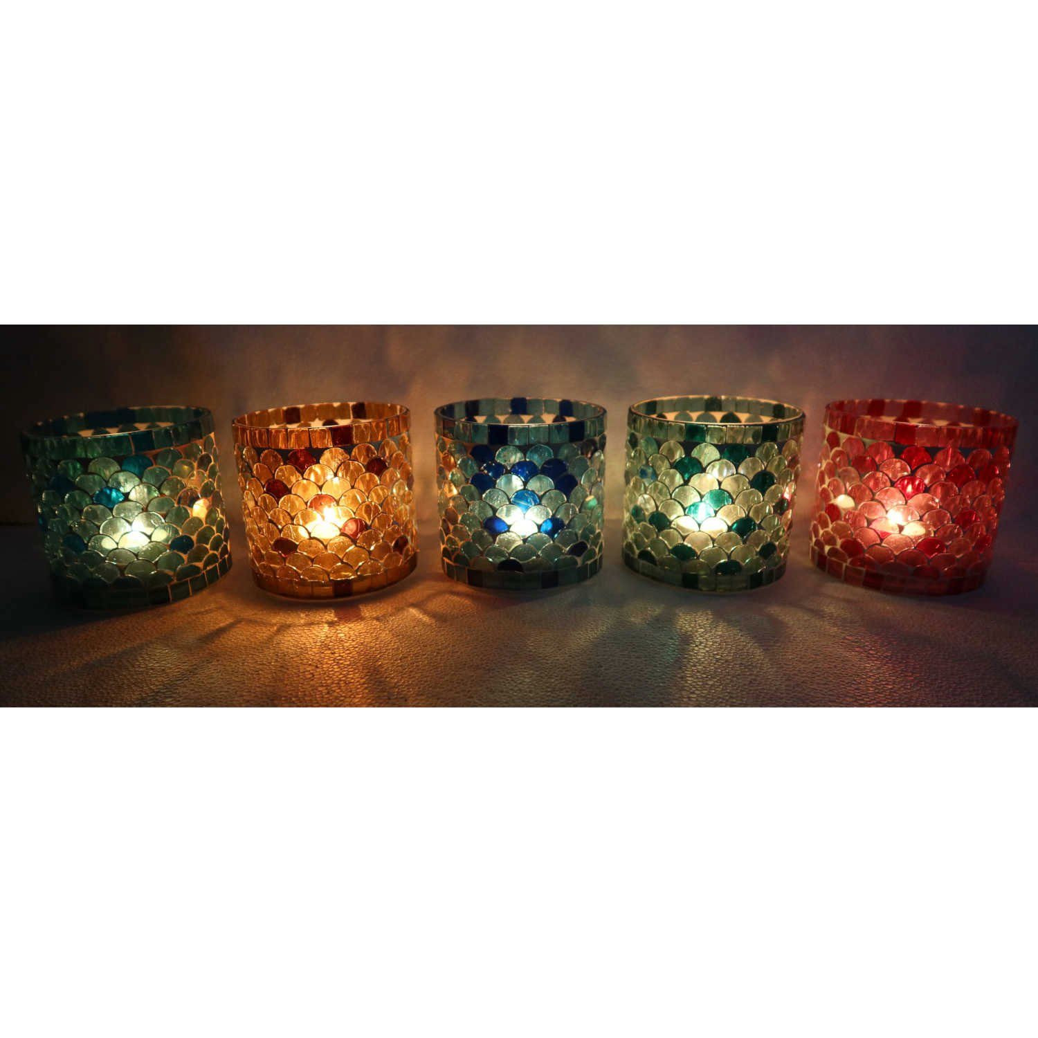 Orientalisches Mosaik Windlicht Athen M 5er Set.