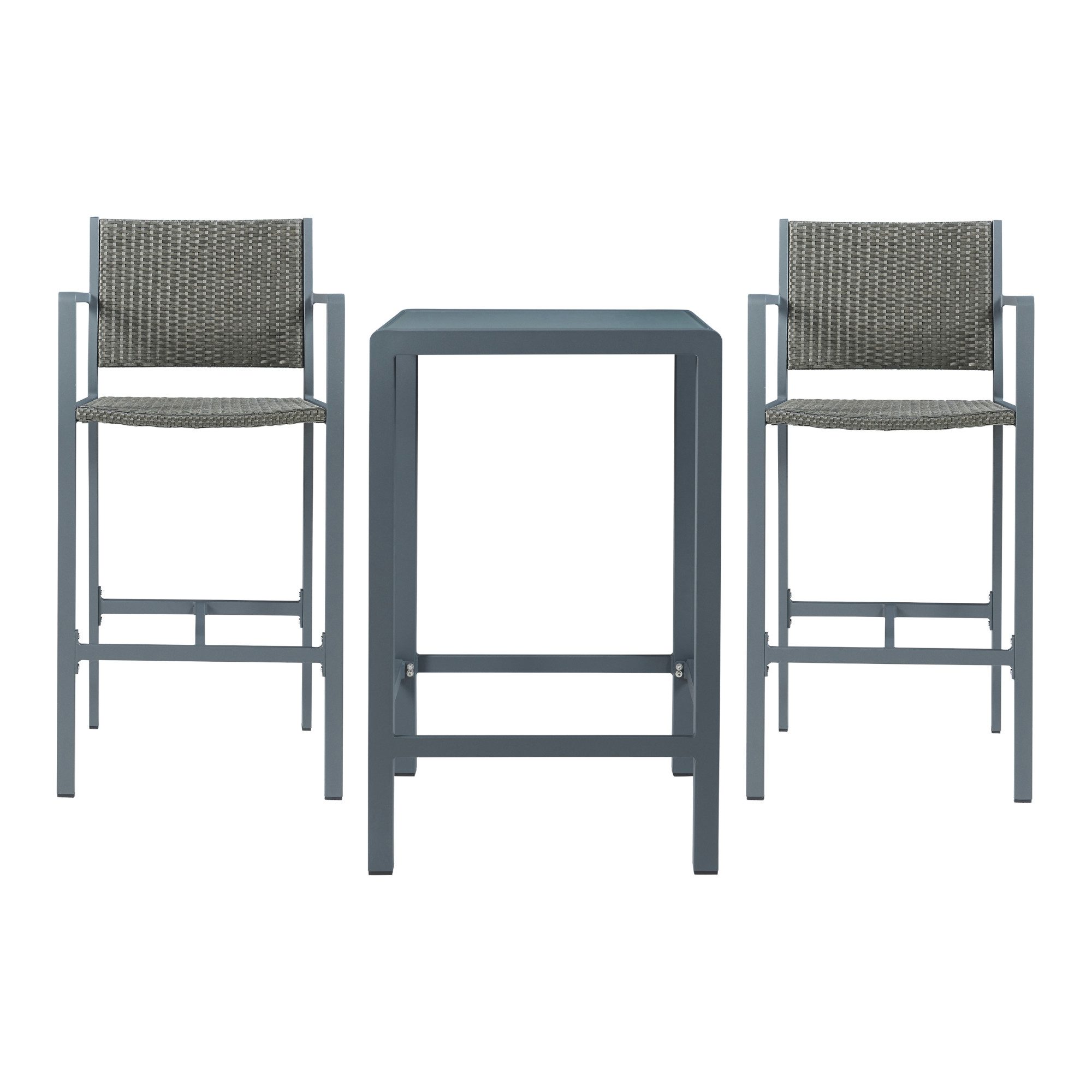 Dieses stilvolle Möbelset besteht aus einem Bartisch und zwei passenden Barstühlen. Es ist eine hervorragende Ergänzung für jeden Außenbereich und eignet sich ideal zum geselligen Beisammensein und Entspannen im Freien.