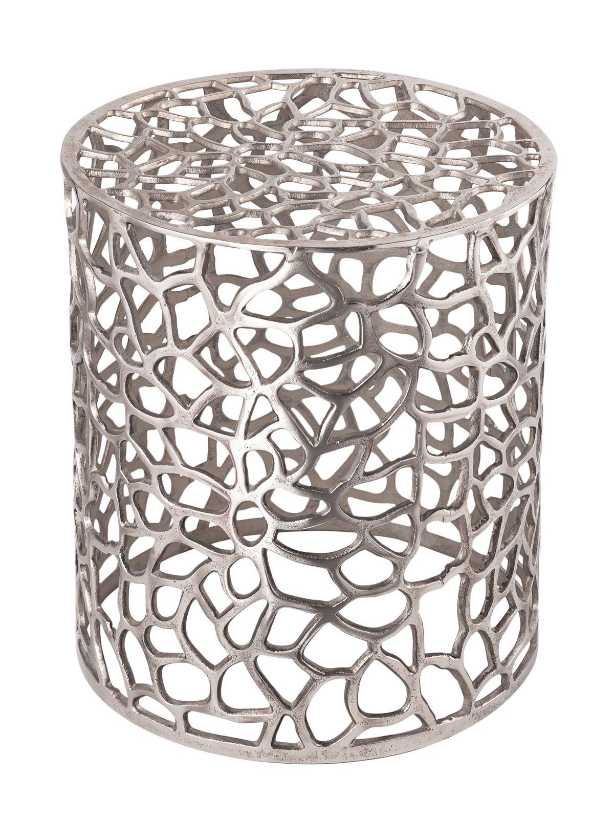 Der hübsche Beistelltisch Agadir ist die perfekte Ergänzung für Ihren Wohnbereich. Der Tisch besteht aus hochwertigem Aluminium und ist in silber oder gold lieferbar. Er ist als kleiner Dekotisch für Kerzen, Obstschalen oder Vasen geeignet, kann aber auch als Ablagetisch für Zeitungen, Bücher, Telefon und mehr verwendet werden. Auch für Balkon, Garten oder als Pflanzentischchen ist er bestens geeignet. In Flur, Wohnzimmer, Esszimmer u. a. Räumlichkeiten ist er mit bunten Blumen, mit einer hübschen Schale, Kerzen oder Schmucksteinen ein echter Hingucker. Mit der aufgerauten, durchbrochenen Platte im Korallen-Design gibt dieser Tisch ein harmonisches Gesamtbild ab und wird mit passenden Dekoelementen ein wahrer Blickfang in jedem Raum. Das Material ist bei Bedarf mit einem feuchten Tuch leicht zu reinigen.