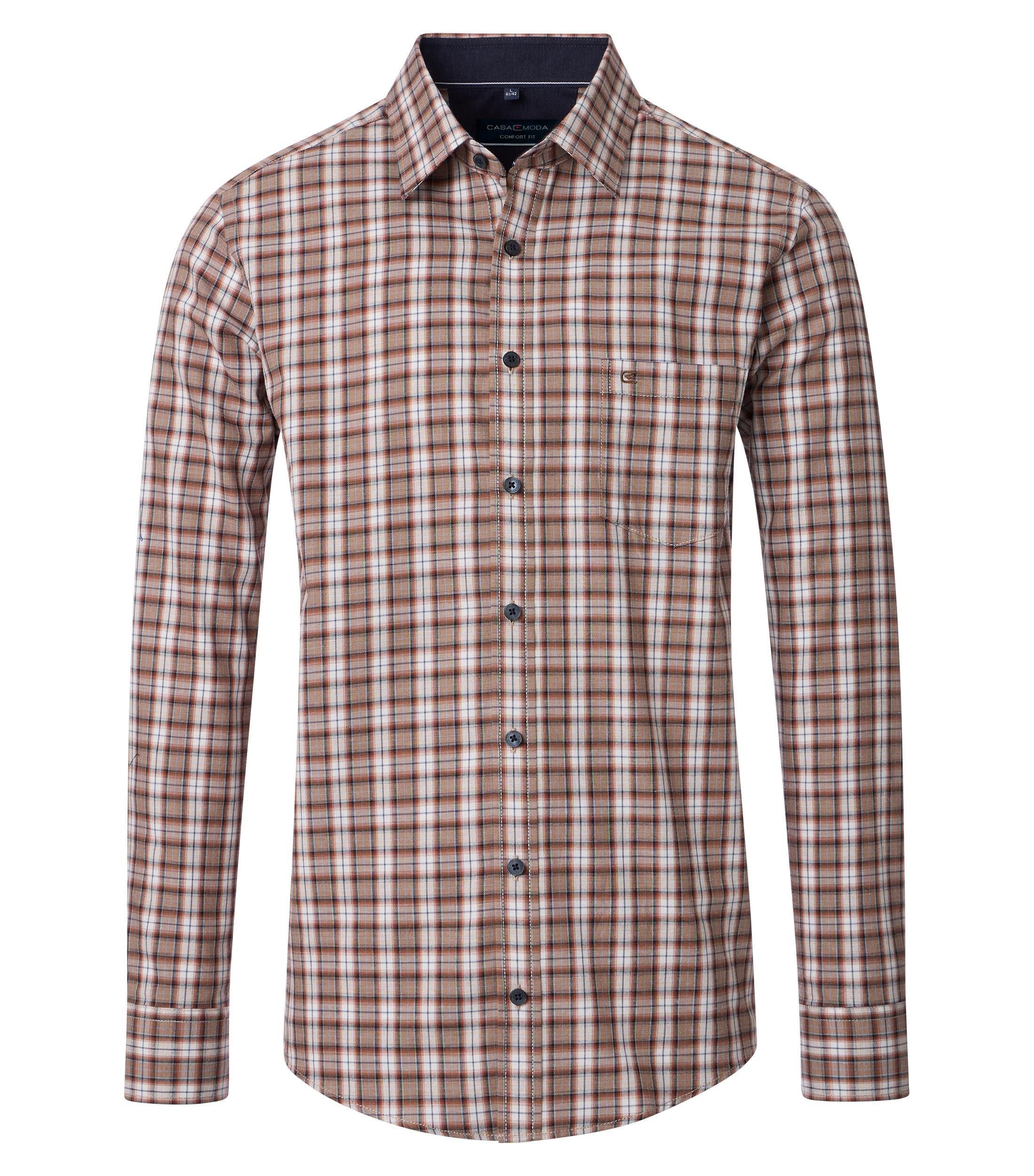 Eigenschaften: Easy Care Herstellerpassform: Comfort Fit Materialzusammensetzung: 100 % Baumwolle Kragenform: Kent-Kragen Muster: kariert Armlänge: Langarm Produktart: Freizeithemd Pflegehinweise: Schonwaschgang 40 °C, nicht bleichen, Nicht im Wäschetrockner trocknen, Mäßig heiß bügeln, Professionelle Trockenreinigung normaler Prozess, Professionelle Nassreinigung schonender Prozess Produktvariante: Twill Stil: Basic Taschen: Mit Brusttasche