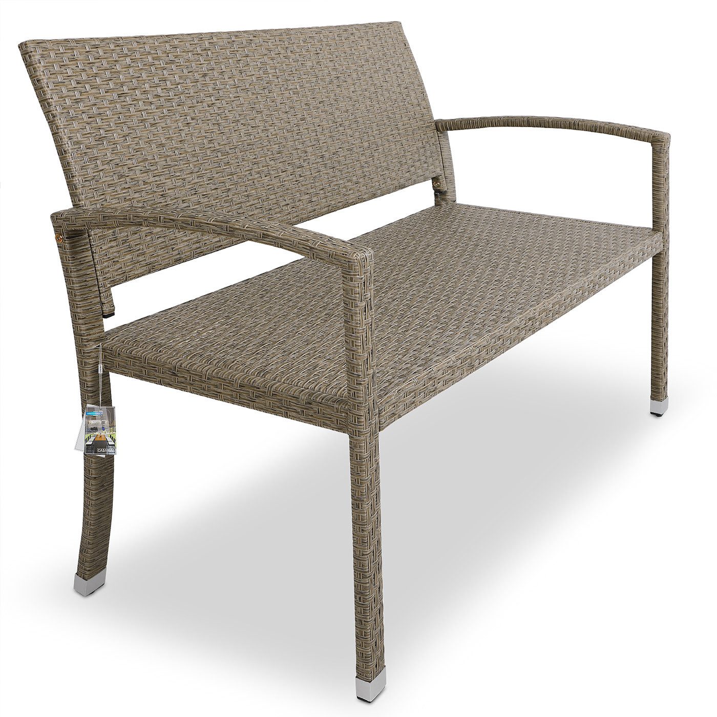 Diese Polyrattan Bank von CASARIA® bietet Platz für bis zu 2 Personen und ist ideal für deinen Balkon oder deine Terrasse geeignet. Dank der Rückenlehne und den Armlehnen lässt es sich bequem sitzen.
