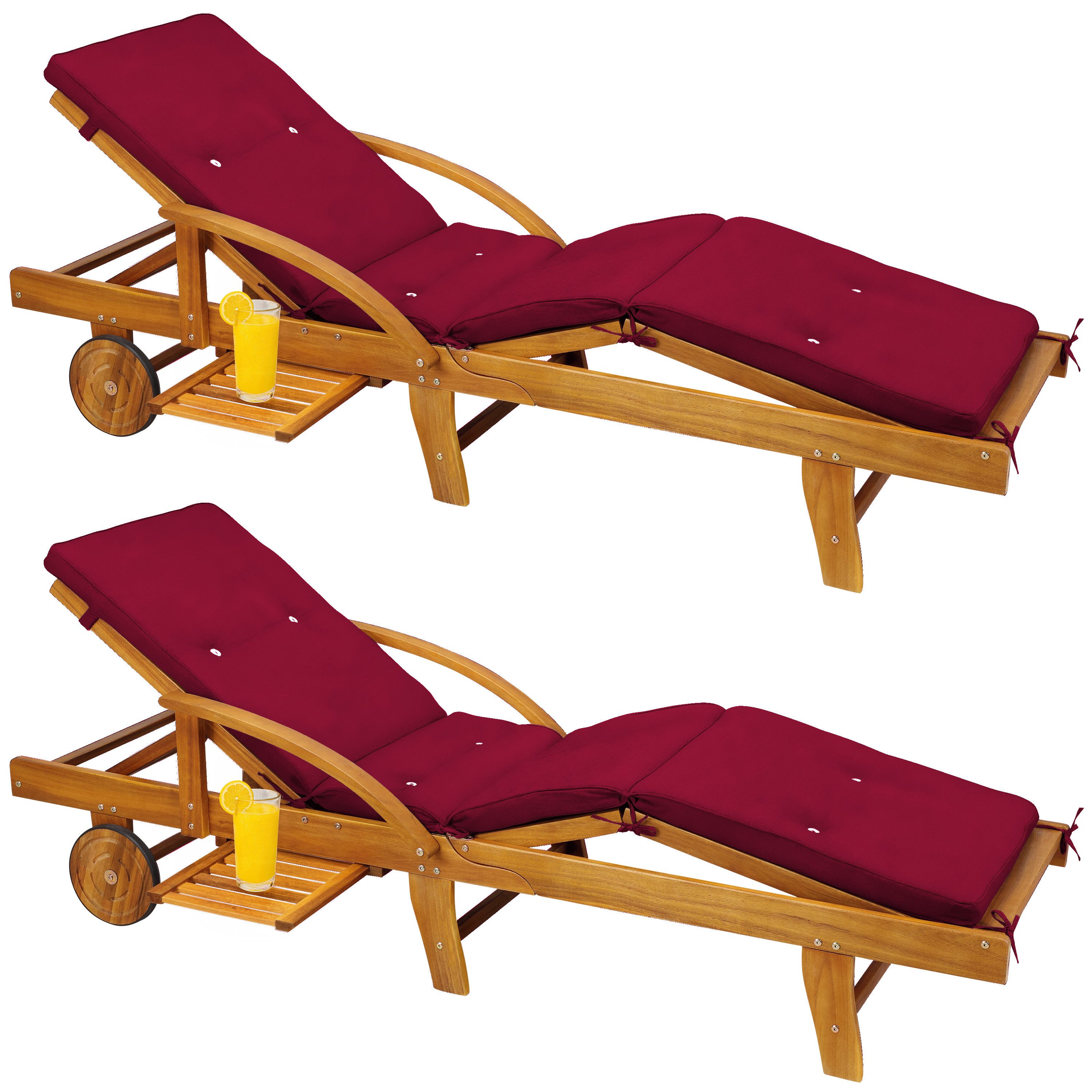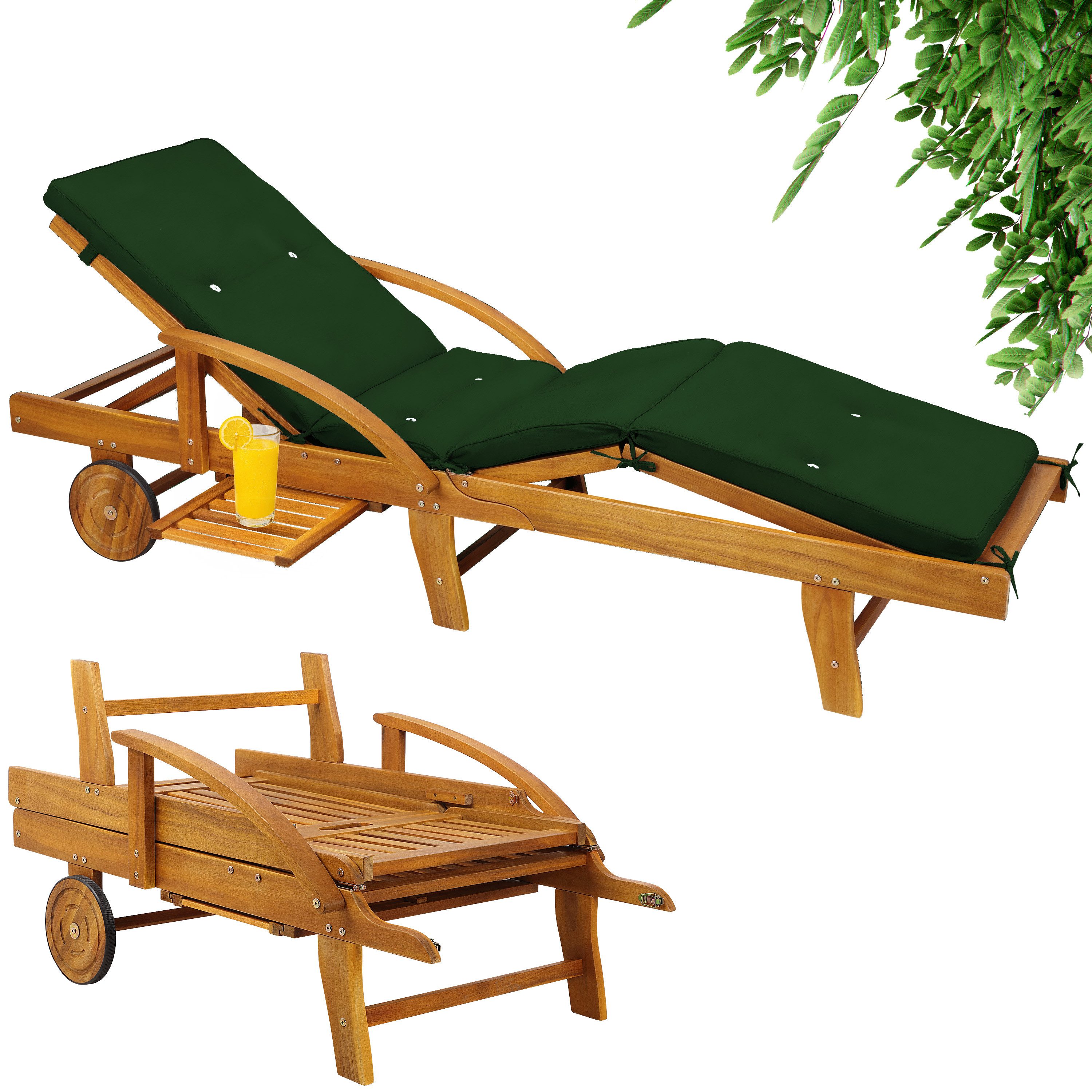 Das Akazienholz ist von Natur aus widerstandsfähig und wetterbeständig. Die wasserabweisende Polsterauflage ist pflegeleicht und kann bei 30°C in der Waschmaschine gereinigt werden. So bleibt deine Liege immer in bestem Zustand.
