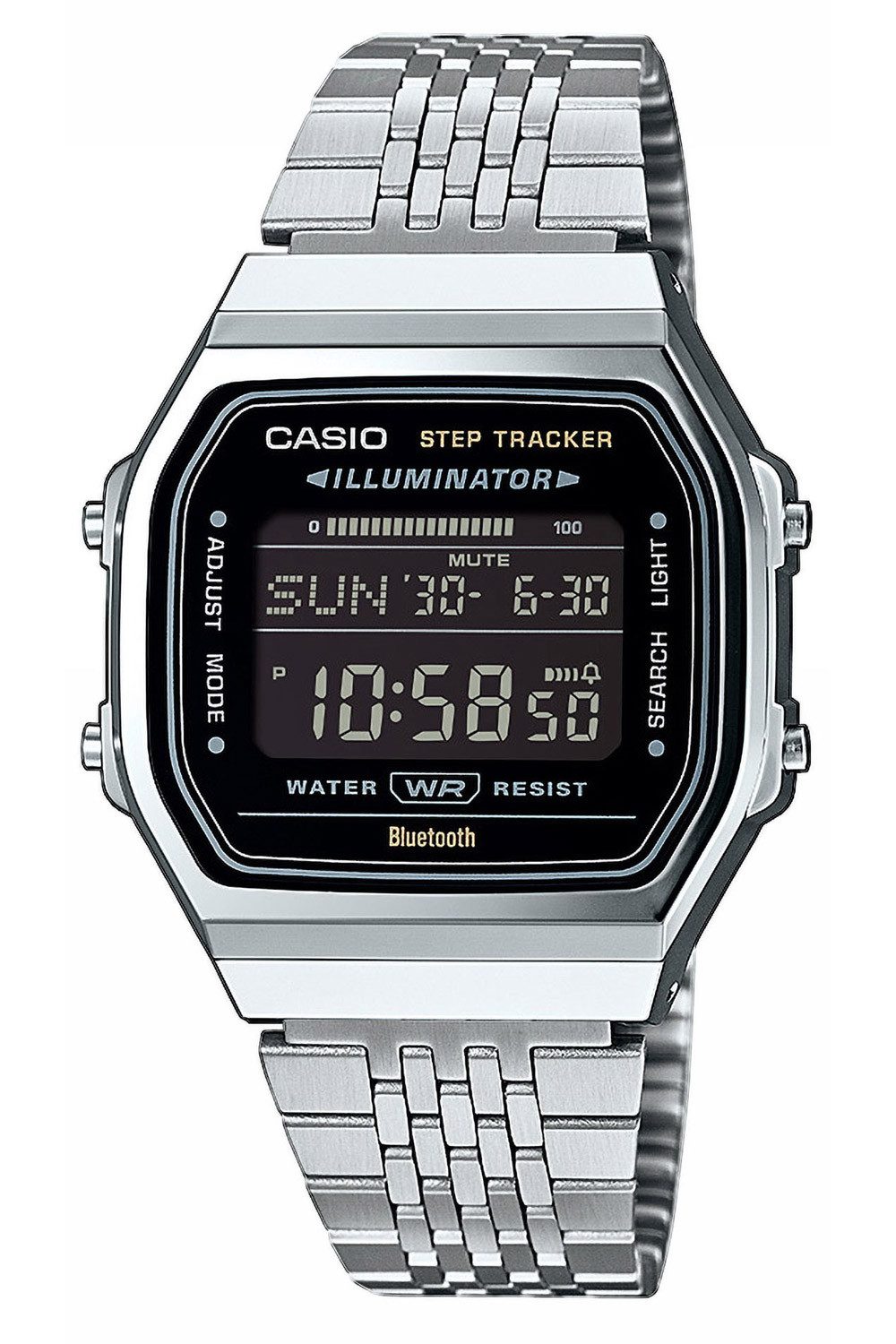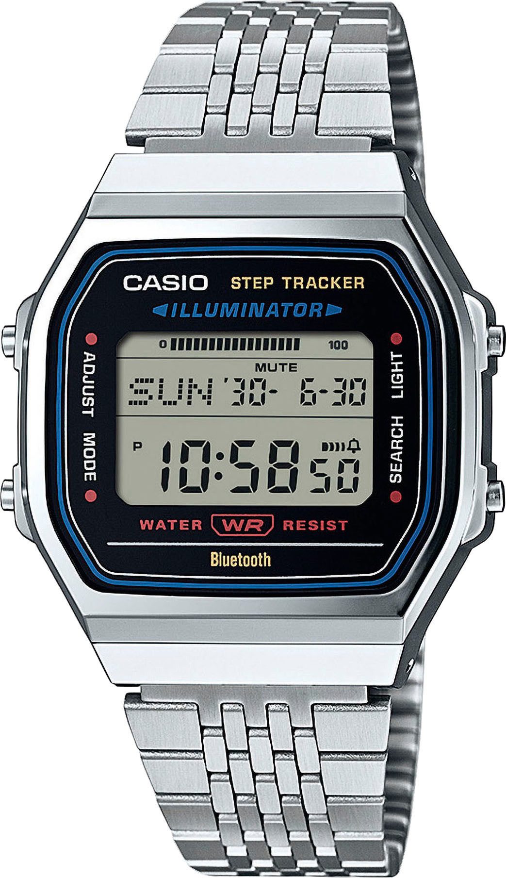 Zusatzfunktionen | 12/24-Stunden-Anzeige 2. Zeitzone Batterie-Entladungsanzeige Phone Finder Timer |