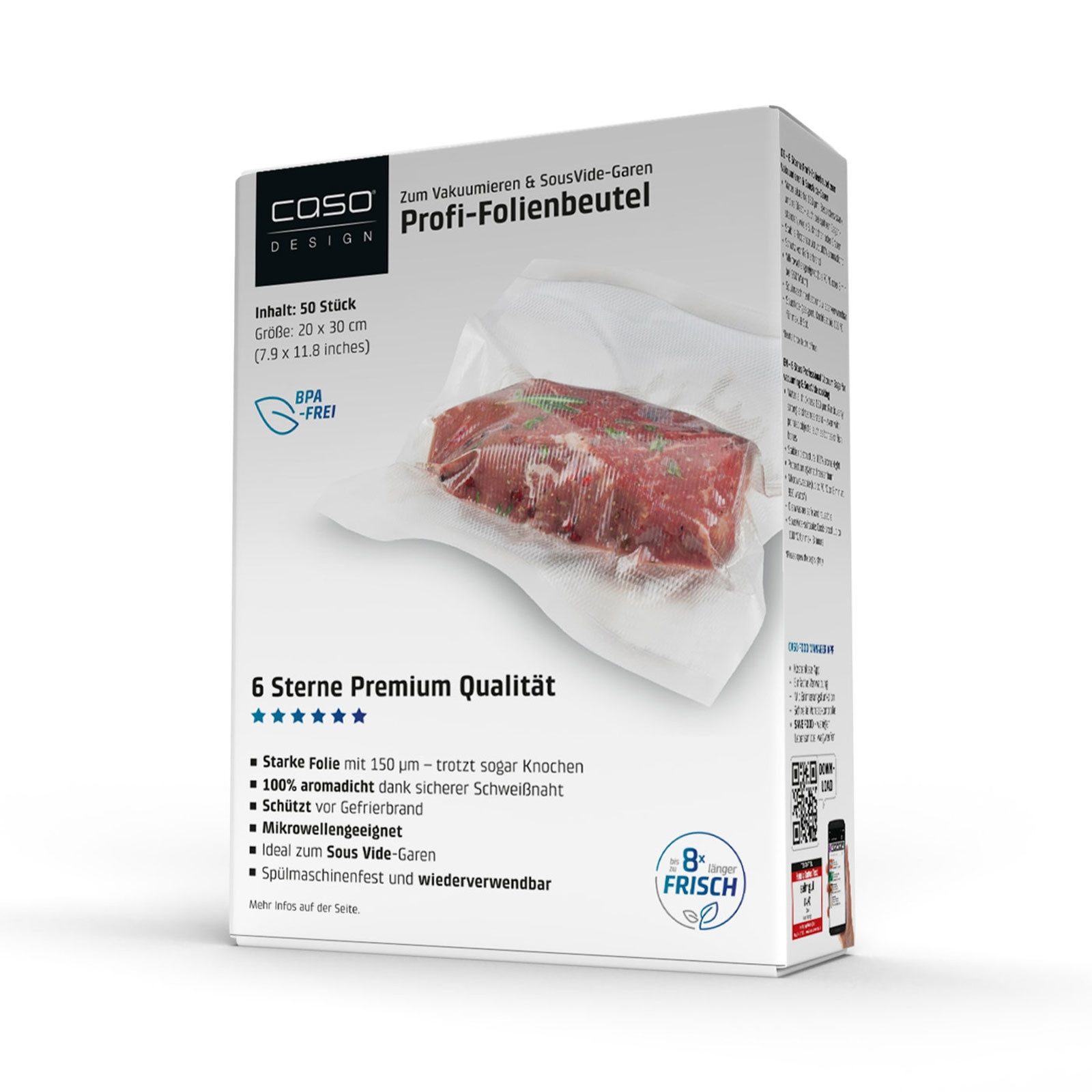 Die CASO Design Strukturbeutel sind die perfekte Lösung, um Lebensmittel länger frisch zu halten und optimal zu schützen. Mit einer Materialstärke von 150 µm sind sie besonders stabil und reißfest – selbst bei groben Inhalten.