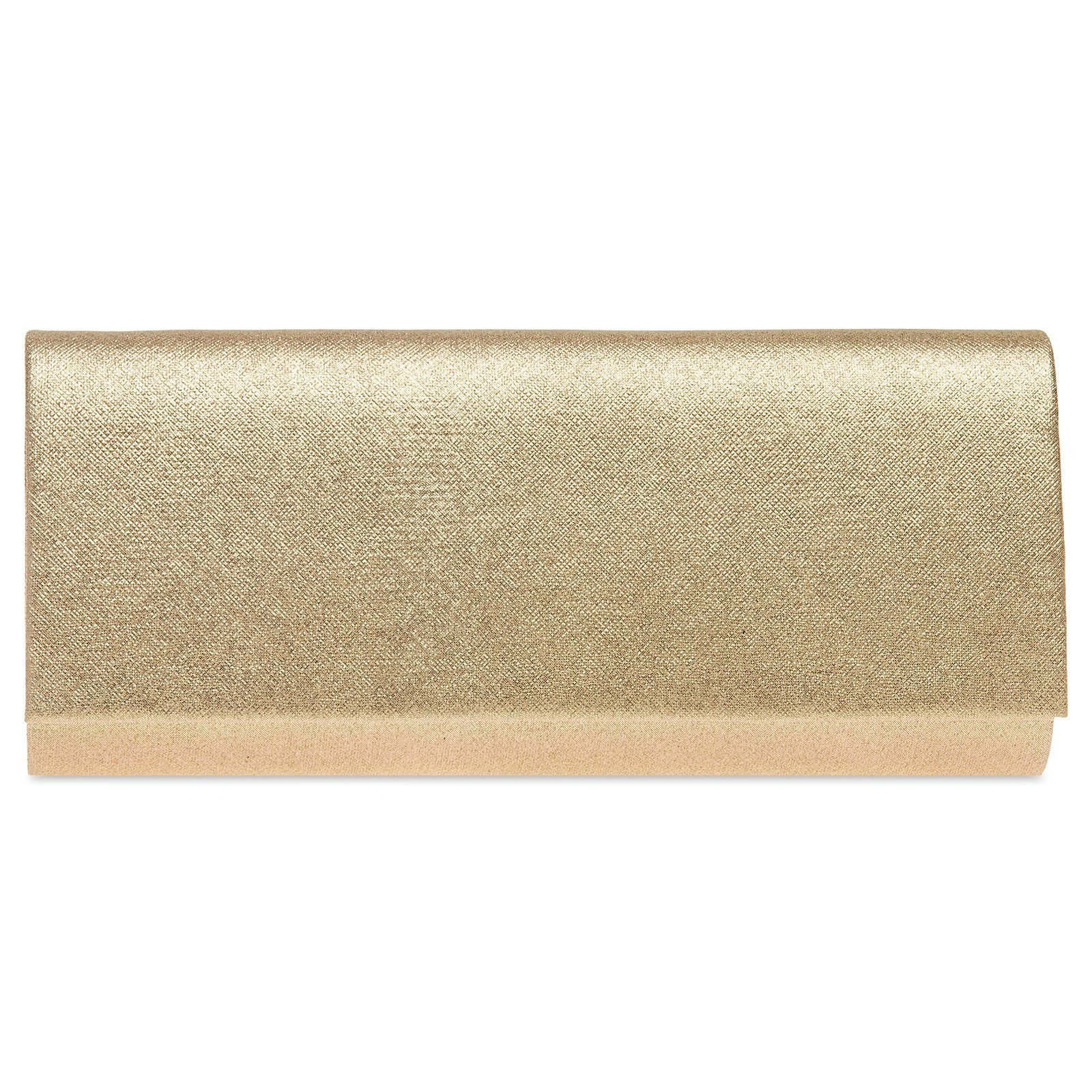 Damen Clutch in klassisch länglicher Form und mit metallisch glänzendem, leicht strukturiertem Finish. Diese wundervolle Abendtasche aus dezent glänzendem, festem Metallic Satin Stoff ist die perfekte Begleiterin für Ihren beeindruckenden abendlichen Auftritt. Sie können die Tasche als Clutch unter dem Arm und in der Hand oder mit Hilfe der langen Zusatzkette auch bequem quer über der Schulter als kleine Umhängetasche tragen. Im Inneren befindet sich ein kleines Seitenfach. Die Clutch lässt sich dank ihrer schlichten Form und Farbigkeit zu einer Vielzahl von Anlässen tragen und zu den unterschiedlichsten Outfits super kombinieren. Maße: Длина ca. 25 cm, Höhe (ohne Henkel) ca. 11 cm, Breite ca. 6 cm. Material: hochwertiger, fester metallic Satin Stoff. Caspar Fashion.