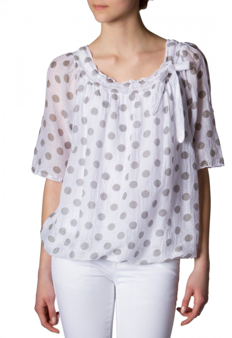 Trendy Sommer Bluse mit Punkten und Schleife mit figurfreundlichem Schnitt.