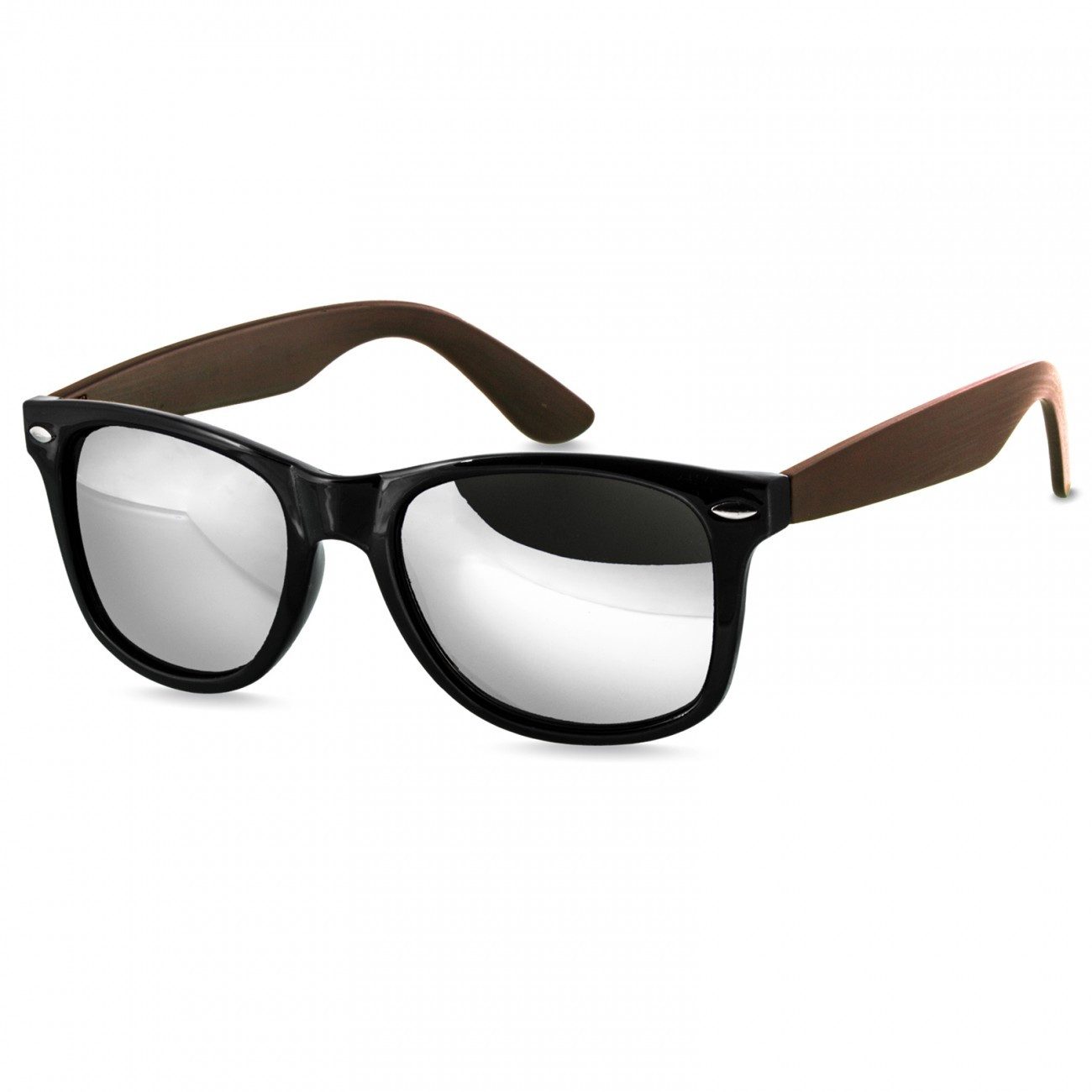 Die markante Form mit den kleinen Metallnieten links und rechts der Gläser erfreut sich eine große Fangemeinde von Stars, Musikern, Künstlern und Liebhabern. Dieses Modell von Caspar gibt es in vielen stylischen Вариантыn. Egal ob mit klassisch schwarzen oder holzfarbenen Bügeln, transparentem oder schwarzem Rahmen, getönten oder farbig verspiegelten Gläsern: jede Variation hat Ihren ganz speziellen Reiz und garantiert ihrem Träger einen lässigen, stilsicheren Auftritt. UV400 Schutz nach EU-Norm sowie sehr gute Verarbeitung und Materialität verstehen sich von selbst. Sie erhalten ein Produkt mit exzellentem Preis- / Leistungsverhältnis. Für Sie entwickelt und hergestellt von CASPAR.