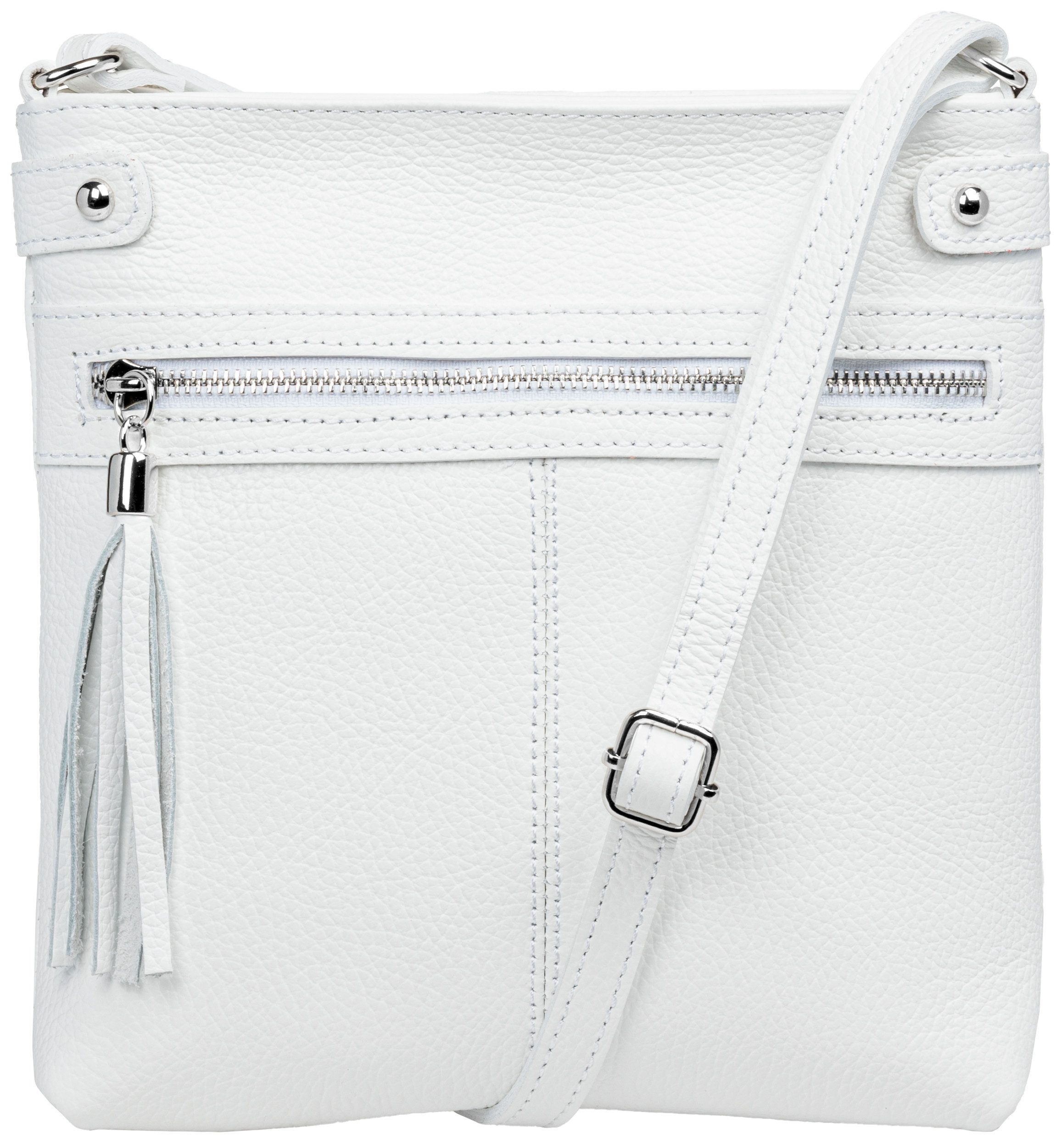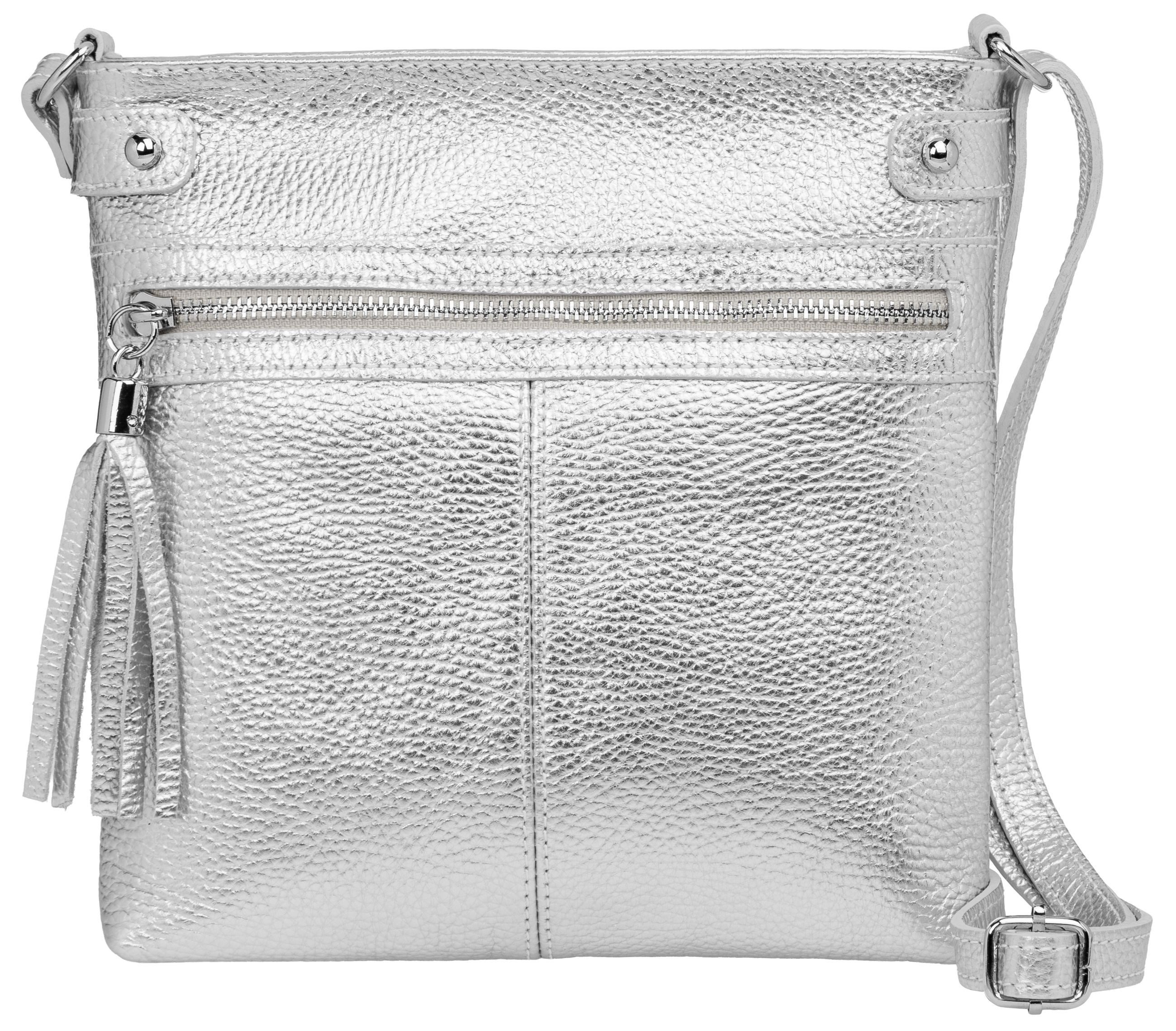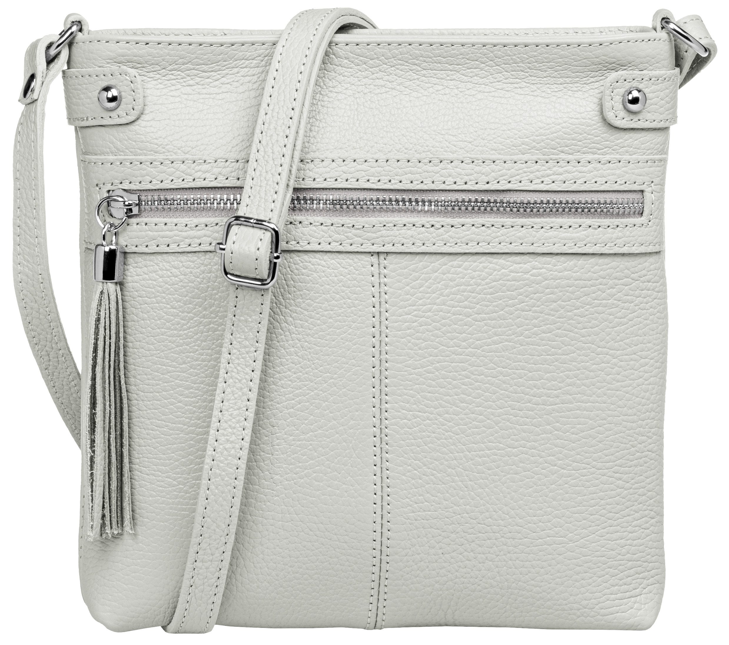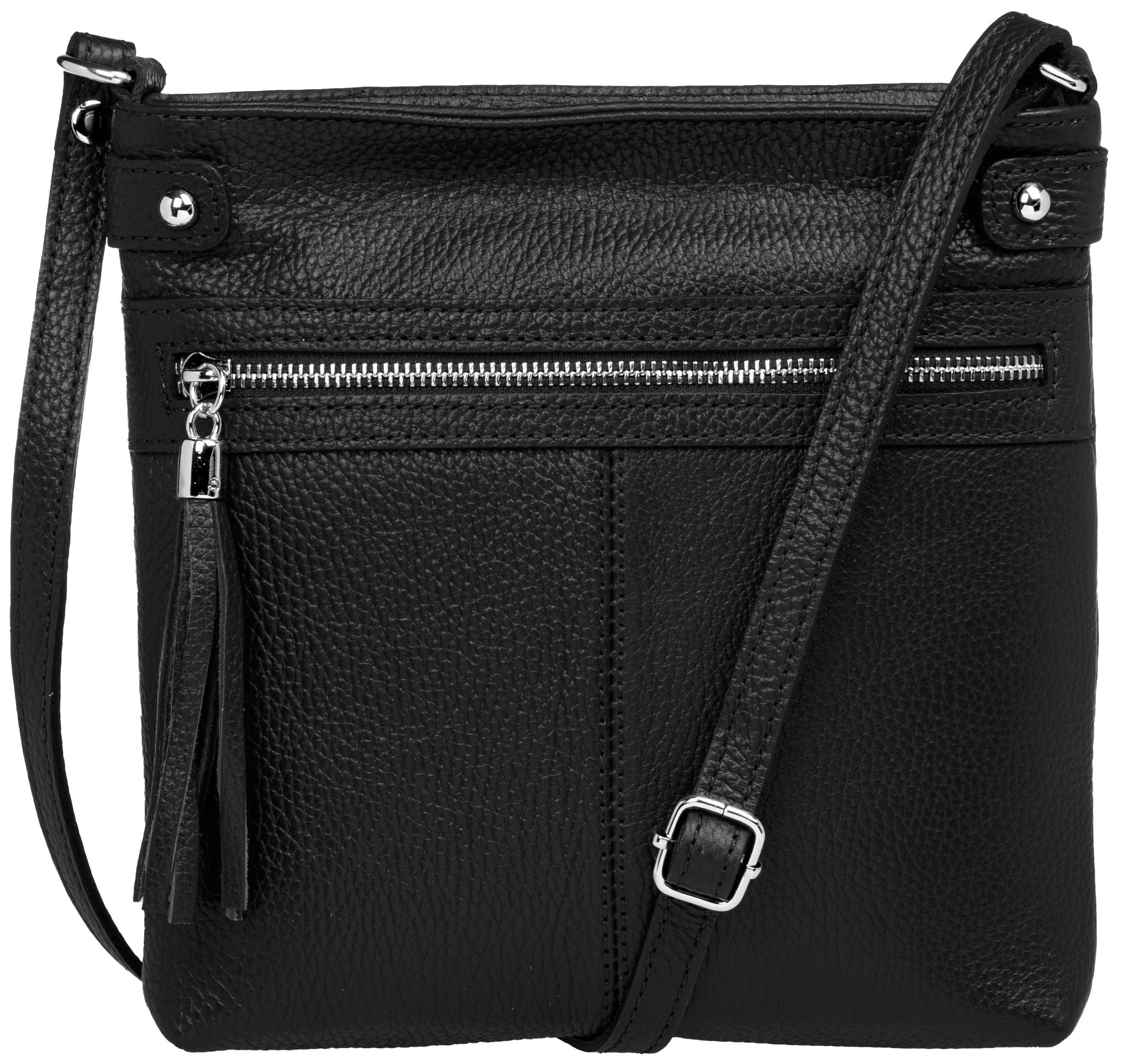 Unsere klassische Umhängetasche vereint schlichtes Design mit sportlich-eleganter Optik und hoher Funktionalität. Sie eignet sich ideal als Messenger Bag oder Crossbody Bag. Gefertigt aus hochwertigem, italienischen Rindsleder ist die Tasche langlebig und eine durchdachte und nachhaltige Echtleder-Alternative zu vergleichbaren Kunstledertaschen. Das Hauptfach ist geräumig gestaltet und mit einem Reißverschluss sicher verschließbar. Zusätzlich sorgen zwei Sicherheitsfächer außen – vorne und hinten – sowie ein weiteres verschließbares Seitenfach im Inneren für eine praktische Aufteilung. Ein silberfarbener Metallreißverschluss auf der Vorderseite mit passendem Leder-Zipper sowie zwei seitliche Laschen mit silberfarbenen Nieten setzen dezente Akzente im ansonsten schlichten Design. Der längenverstellbare Schultergurt und das geringe Gewicht ermöglichen ein angenehmes, komfortables Tragen – auch über längere Zeit hinweg. Dank ihrer zurückhaltenden Optik passt die Tasche zu vielen Outfits und Anlässen - sei es im Alltag, in der Freizeit oder auf dem Weg zur Arbeit. Eine zwar unspektakuläre aber sehr praktische Tasche, die Du nicht mehr missen möchtest. Als Modell unserer CLASSIC-LINE bietet sie zudem ein sehr gutes Preis-Leistungs-Verhältnis.