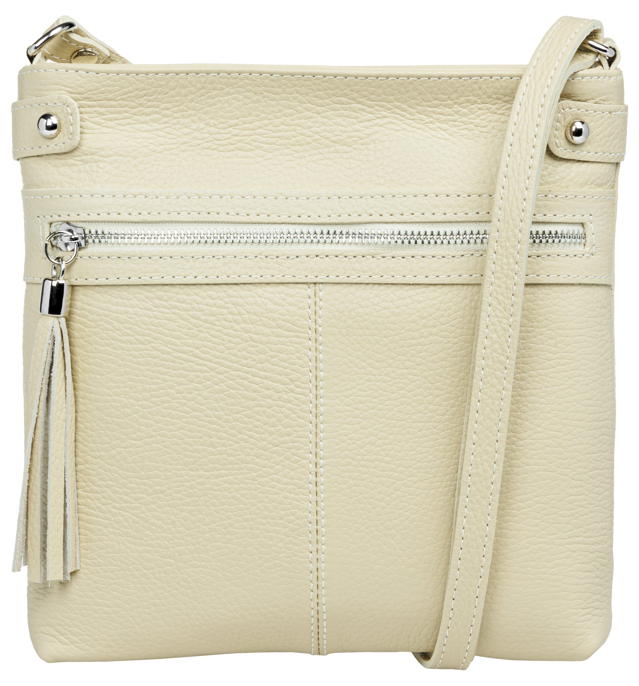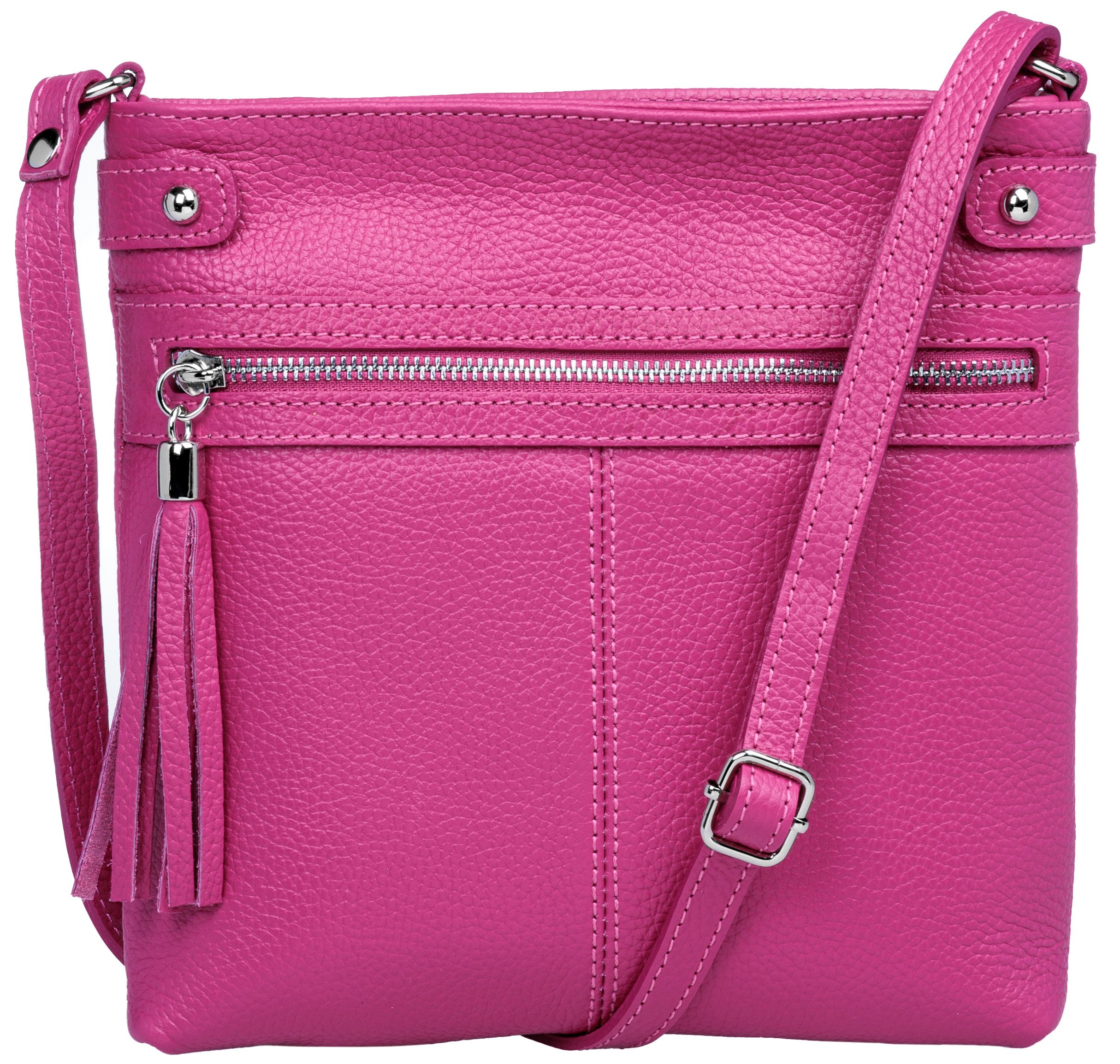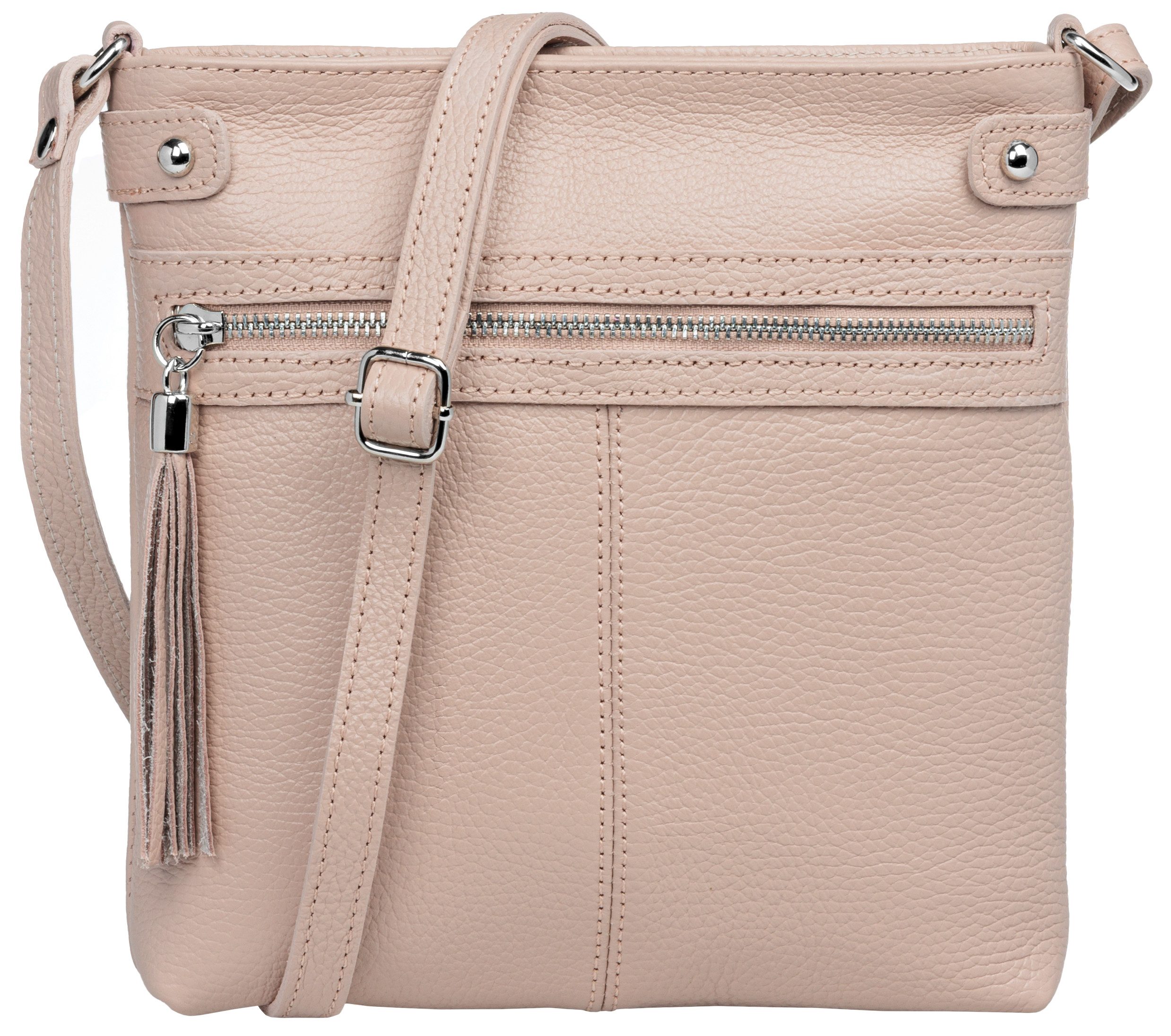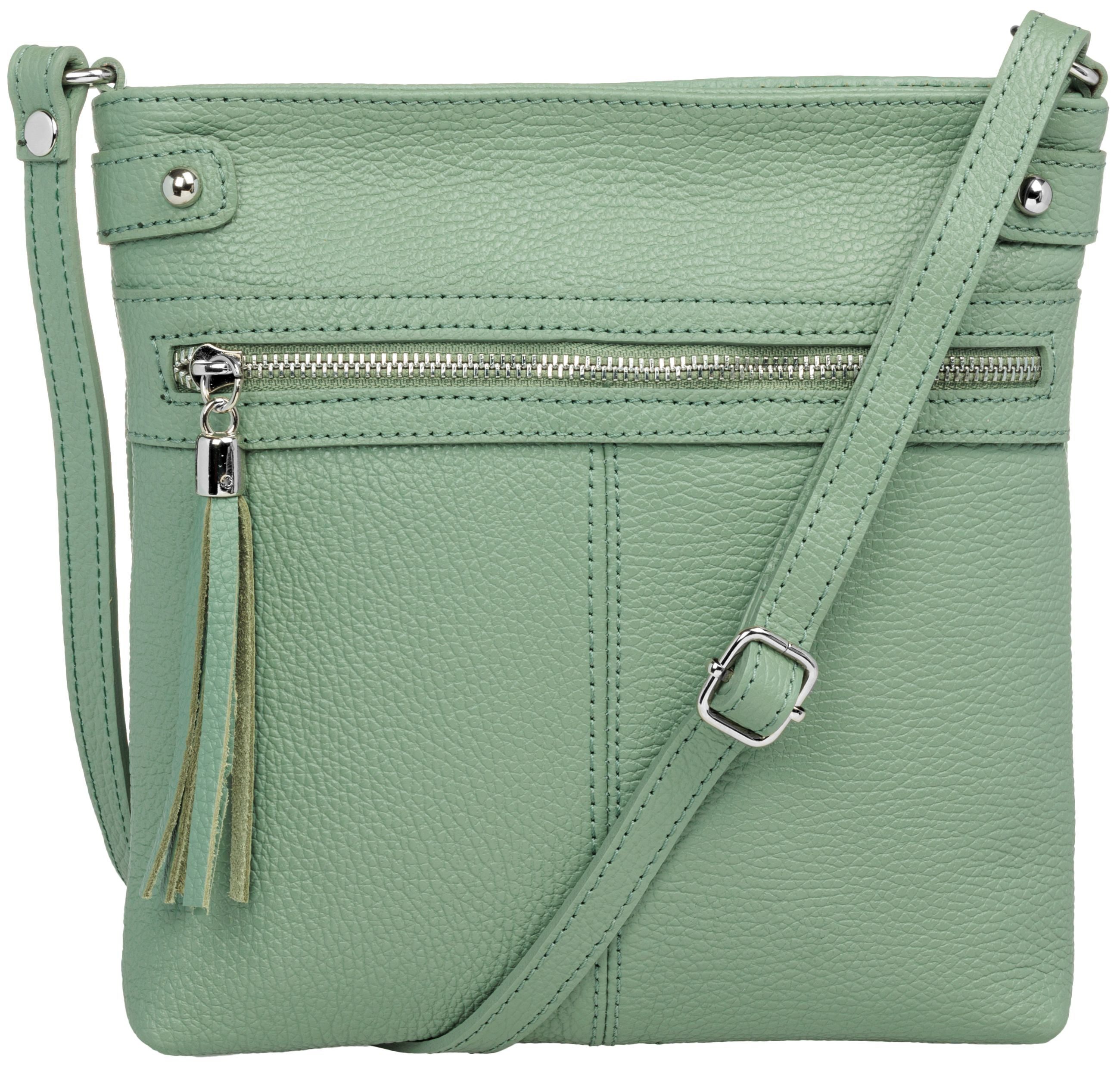 Unsere klassische Umhängetasche vereint schlichtes Design mit sportlich-eleganter Optik und hoher Funktionalität. Sie eignet sich ideal als Messenger Bag oder Crossbody Bag. Gefertigt aus hochwertigem, italienischen Rindsleder ist die Tasche langlebig und eine durchdachte und nachhaltige Echtleder-Alternative zu vergleichbaren Kunstledertaschen. Das Hauptfach ist geräumig gestaltet und mit einem Reißverschluss sicher verschließbar. Zusätzlich sorgen zwei Sicherheitsfächer außen – vorne und hinten – sowie ein weiteres verschließbares Seitenfach im Inneren für eine praktische Aufteilung. Ein silberfarbener Metallreißverschluss auf der Vorderseite mit passendem Leder-Zipper sowie zwei seitliche Laschen mit silberfarbenen Nieten setzen dezente Akzente im ansonsten schlichten Design. Der längenverstellbare Schultergurt und das geringe Gewicht ermöglichen ein angenehmes, komfortables Tragen – auch über längere Zeit hinweg. Dank ihrer zurückhaltenden Optik passt die Tasche zu vielen Outfits und Anlässen - sei es im Alltag, in der Freizeit oder auf dem Weg zur Arbeit. Eine zwar unspektakuläre aber sehr praktische Tasche, die Du nicht mehr missen möchtest. Als Modell unserer CLASSIC-LINE bietet sie zudem ein sehr gutes Preis-Leistungs-Verhältnis.