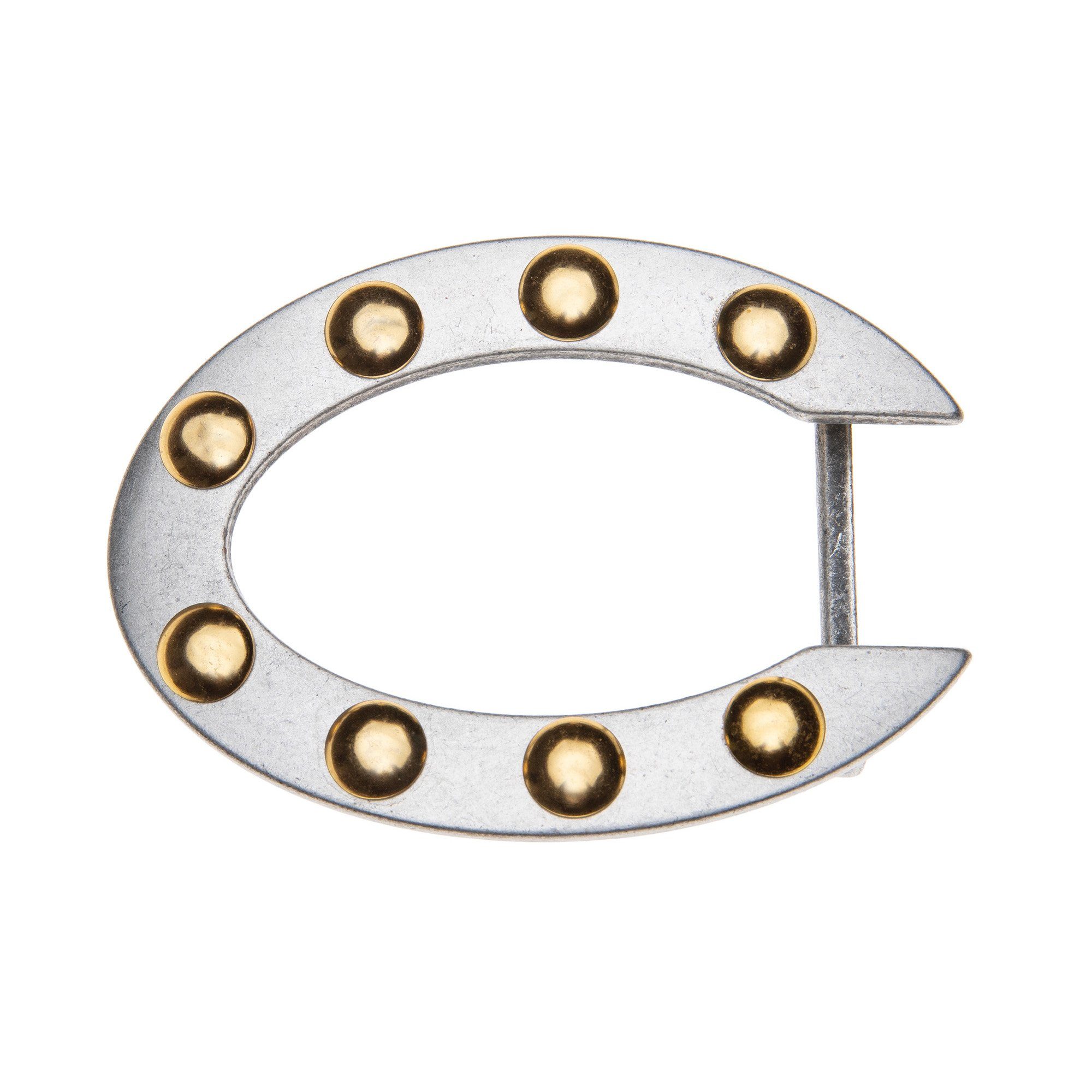 Diese besondere Gürtelschließe in Hufeisen-Form überzeugt durch ihren eleganten Look und die hochwertige Verarbeitung. Die andersfarbigen Dots lassen geben das besondere Etwas. Die Schnalle kann zu einer Vielzahl an Looks kombiniert werden und lässt sich somit zu den unterschiedlichsten Anlässen tragen. Sie wird immer ein absolutes Highlight Ihres Outfits darstellen. Sie kann mit Gürtelriemen bis zu einer Breite von 40mm, die mit Druckknopf- oder Schraubsystem ausgestattet sind, kombiniert werden. Gefertigt ist die Austauschschnalle aus hochwertigem Zamak.