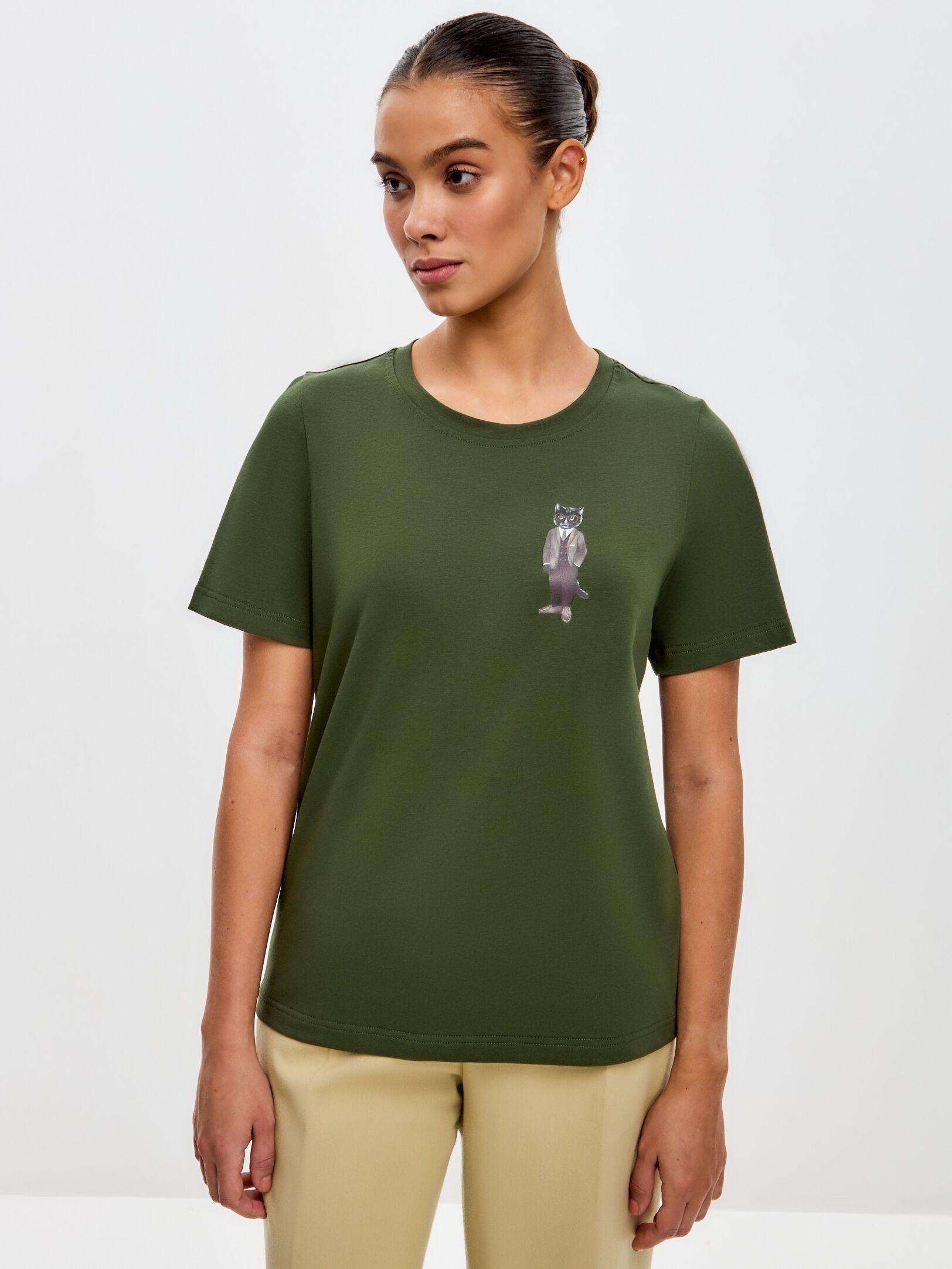 Hochwertiger DTF-Druck eines Katzenmotivs auf dem T-Shirt – wesentlich haltbarer als ein normaler Fotodruck
