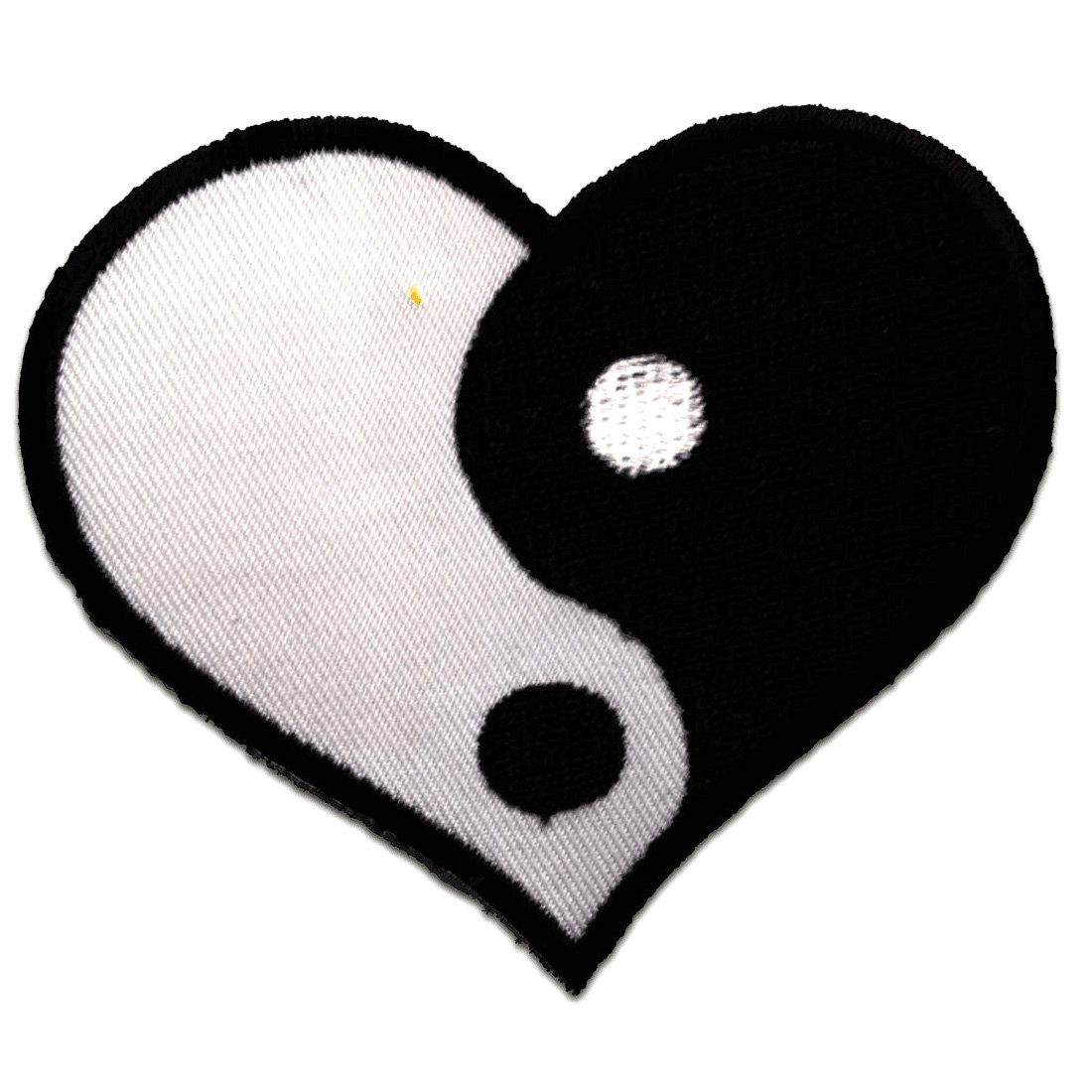 Catch the Patch Aufnäher Bügelbild, Aufbügler, Applikationen, Patches, Flicken, zum aufbügeln, Polyester, Yin Yang Symbol Herz - Größe: 8,7 x 7,5 cm