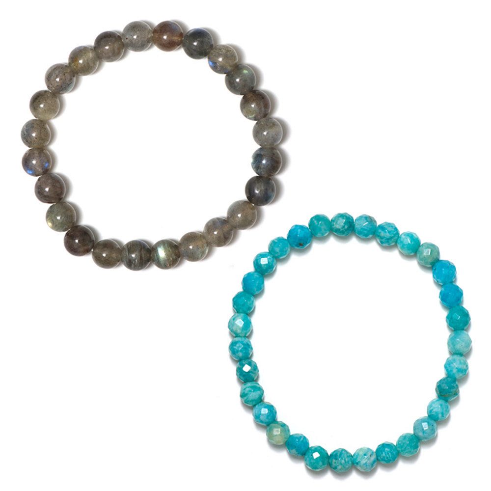 Dieses exklusive Edelstein-Armbandset besteht aus hochwertigem Labradorit aus Madagaskar und strahlendem Amazonit aus Indien. Die rund geschliffenen, polierten Edelsteine in schimmernden Grautönen und lebhaftem Türkis sind handgefertigt und zu einem harmonischen Ensemble ergänzt. Mit einem Gesamtkaratgewicht von 124,45 ct und einer Длина von ca. 18 cm setzen diese Armbänder ein stilvolles Statement. Ideal als Accessoire zu casual Looks oder eleganter Abendgarderobe, eignen sie sich bestens für festliche Anlässe ebenso wie für den Alltag. Schmuckliebhaber schätzen die Kombination aus natürlicher Schönheit und edlem Schliff, die jedem Outfit eine besondere Note verleiht.