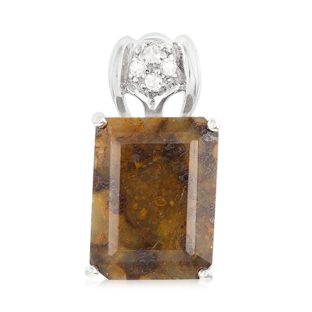 Unser Dinosaurier-Quarz-Silberanhänger ist ein faszinierendes Kunstwerk, das sowohl Einsteiger als auch erfahrene Liebhaber bezaubert. Der zentrale, 10,77 Karat schwere Dinosaurier-Quarz aus den USA im eleganten Oktagonschliff wird kunstvoll von vier weißen Topasen im Brillantschliff aus Brasilien ergänzt. Die moderne 925er Sterlingsilber-Fassung unterstreicht den natürlichen Charme des Steins und verleiht diesem Anhänger eine zeitgemäße Eleganz. Perfekt geeignet als Blickfang zu legeren Alltagsoutfits oder als stilvolles Highlight bei besonderen Anlässen wie Dinnerpartys oder Business-Meetings.