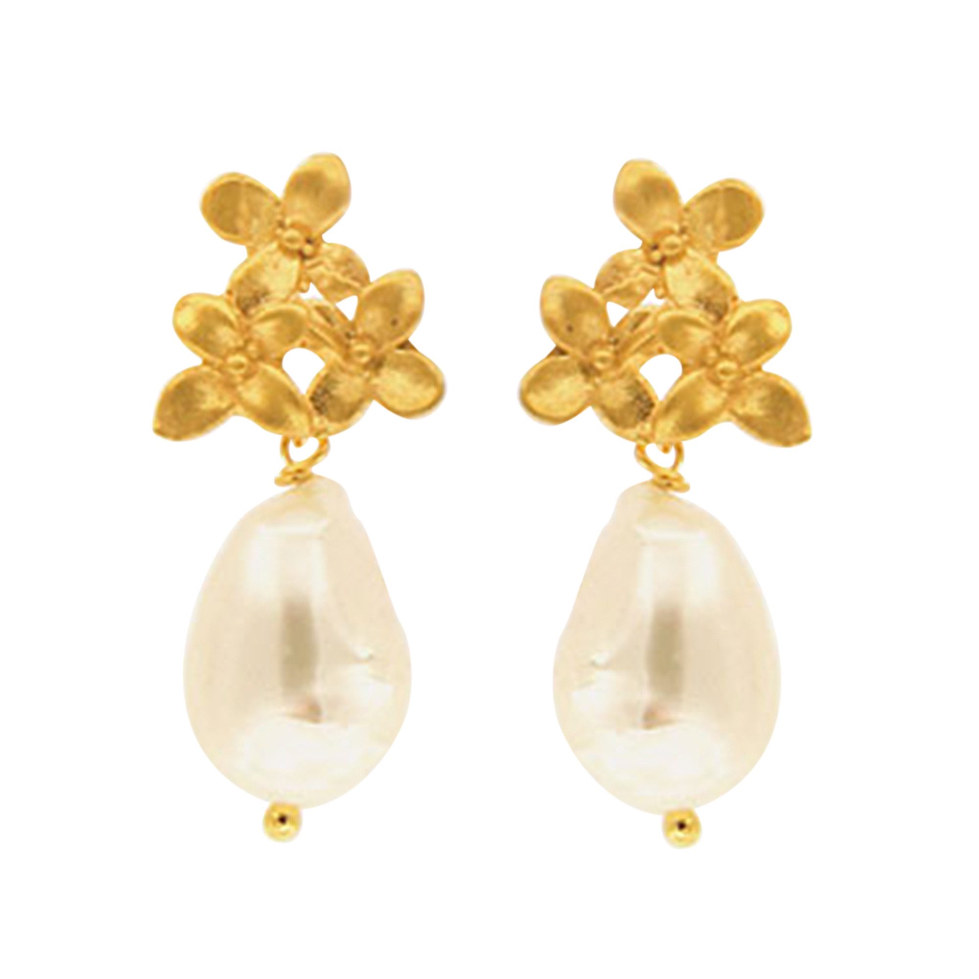 Die weißen Süßwasserzuchtperlen-Silberohrringe von Joias do Paraíso sind ein wunderbarer Einstieg für alle, die den Zauber von Perlen schätzen lernen möchten. Jede Perle wurde sorgfältig aus China ausgewählt und besitzt eine außergewöhnliche fancy Form von etwa 9,5 x 7,5 mm. Sie ist meisterhaft in vergoldetes 925er Sterling Silber eingefasst, was den Ohrringen eine warme, noble Note verleiht. Für erfahrene Liebhaber von Perlen und hochwertigem Schmuck eröffnen die floralen Details im oberen Bereich eine charmante Design-Komplexität. Dank der mittleren Размер von 26 mm sind diese Ohrringe vielseitig tragbar – sie passen perfekt zu stilvoller Abendgarderobe oder verleihen casual Outfits eine besondere Raffinesse. Ob beim festlichen Dinner, im Büro oder beim Ausgehen: Dieses Accessoire setzt stets ein geschmackvolles Statement.