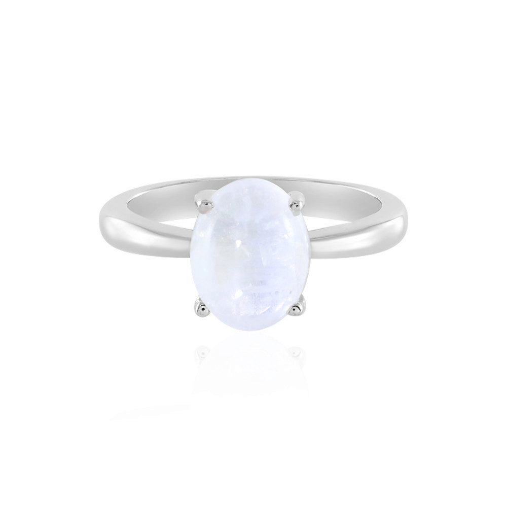 Cavill Solitärring Regenbogen-Mondstein Ring 2,04 ct, platinisiertes Silber, oval (1-tlg)