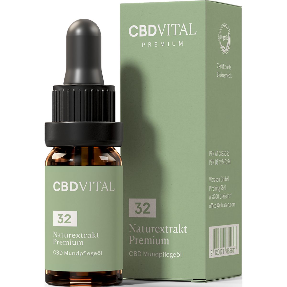 Das Naturextrakt Premium CBD Öl 32% wirkt auf der Mundschleimhaut und spendet so direkt die intensive Kraft der Hanfpflanze. Durch das synergistische Zusammenspiel zwischen CBD-reichem Hanfblätterextrakt und Bio-Hanfsamenöl sind optimale Effekte und eine maximale Verträglichkeit bei höchster Reinheit gegeben. Das CBD VITAL Naturextrakt PREMIUM 32% beinhaltet ausschließlich natürliches (organisches) Cannabidiol. Es wird kein künstliches, synthetisches CBD zugesetzt, was bei vielen CBD-Produkten der Fall ist. Vitamin E schützt Zellen vor oxidativen Stress. Besonders hochwertig, ohne unnötige Zusatz- und Konservierungsstoffe.