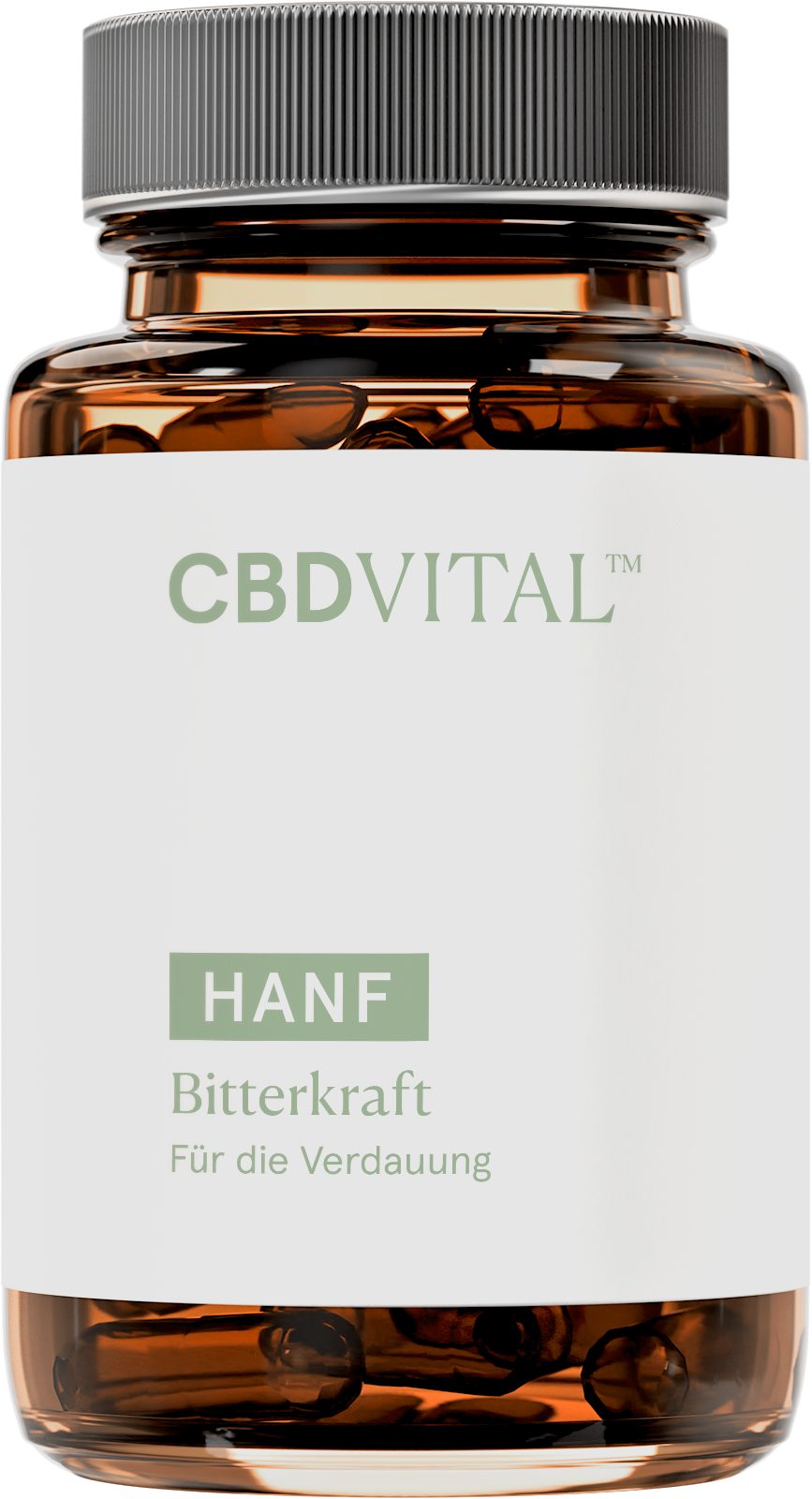 Die CBD VITAL Hanf Bitterkraft Kapseln kombinieren natürliche Bitterstoffe zu einem erlesenen Kräuterauszug. Löwenzahn, Brennnessel, Enzian, Schafgarbe, Artischocke, Curcuma & Co. sorgen für die volle Kraft an Bitterstoffen. Die Kombination mit Selen, Zink, Hanfblattpulver und Reishi, einem traditionell chinesischen Vitalpilz, macht die Kapseln im Vergleich einzigartig. Die Bitterstoffe tragen zusätzlich dazu bei, lästigen Heißhunger zu reduzieren und sorgen dafür, sich schneller satt zu fühlen. Perfekt für Naschkatzen und Personen, bei denen die Augen oft größer sind als der Hunger. Hanfblattpulver und Reishi sorgen für den zusätzlichen Wohlfühl-Effekt und schmeicheln dem überlasteten Magen. Spüren Sie mit Hanf Bitterkraft das volle Potential der Bitterstoffe.