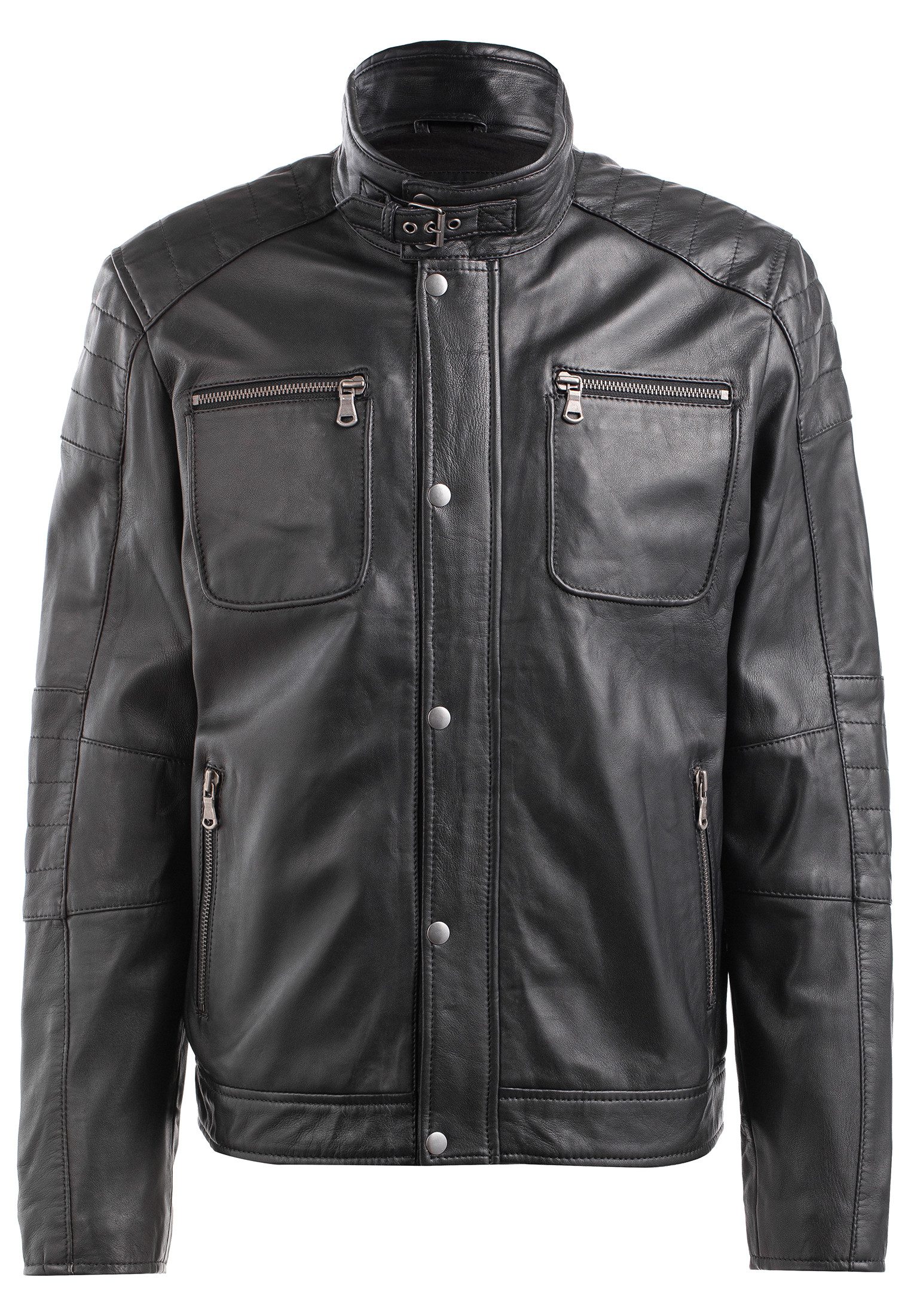 Unsere Herren Lederjacke ist der Inbegriff von Stil und Funktionalität. Gefertigt aus hochwertigem Lammleder, verspricht sie Langlebigkeit und einen unvergleichlichen Komfort. Die schlanke Passform garantiert eine ideale Silhouette, während der hohe Stehkragen mit Gürtelschnalle und die Taschen mit Reißverschlüssen praktische und stilvolle Details hinzufügen. Mit doppeltem Verschluss - Reißverschluss und Knopfleiste - bietet diese Jacke Flexibilität in der Handhabung. Absteppungen an den Schultern runden das Design ab und machen sie zu einem unverzichtbaren Bestandteil jeder Herrengarderobe. Erleben Sie die perfekte Mischung aus Eleganz und Bequemlichkeit!