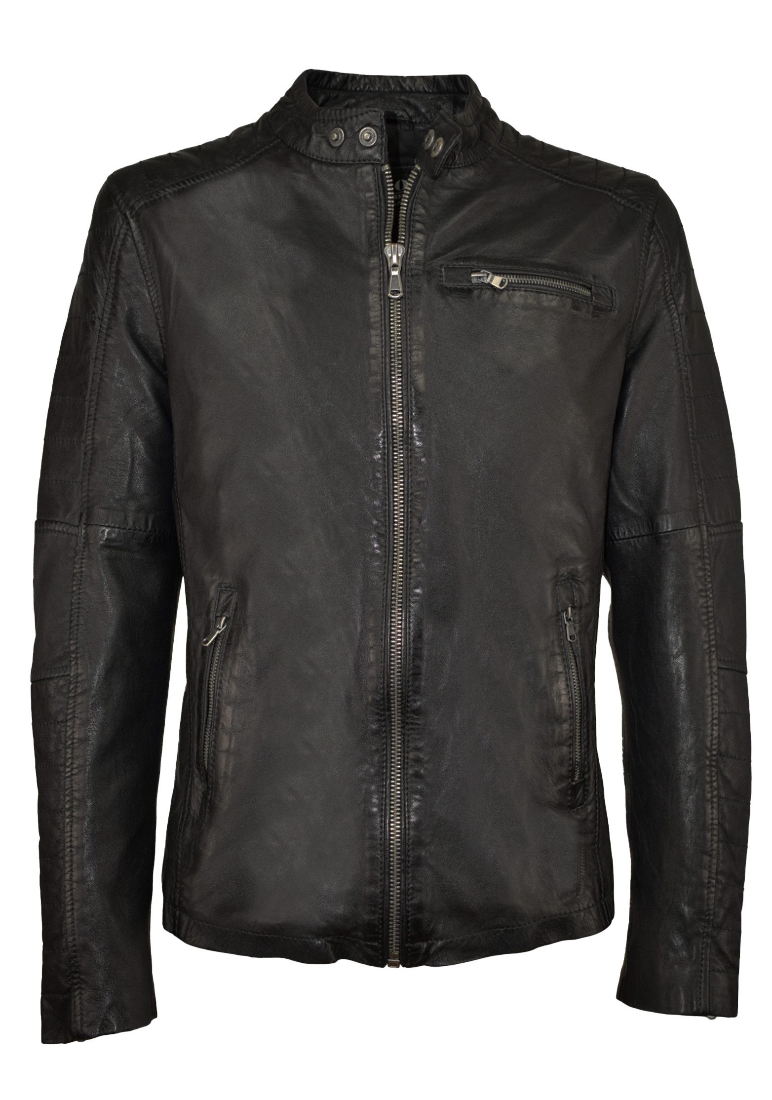 Unsere Lederjacke ist ein Alltagsbegleiter aus weichem, strapazierfähigem Lammnappa. Die Bikerjacke aus Leder hat einen Stehkragen mit Druckknopf und ist slimfit geschnitten. Geschmackvoll ist die dezent eingesetzte Steppung im Schulter- und Armbereich. Ein absolutes Allround-Talent. Die Jacke für Herren passt sich jedem Outfit an.